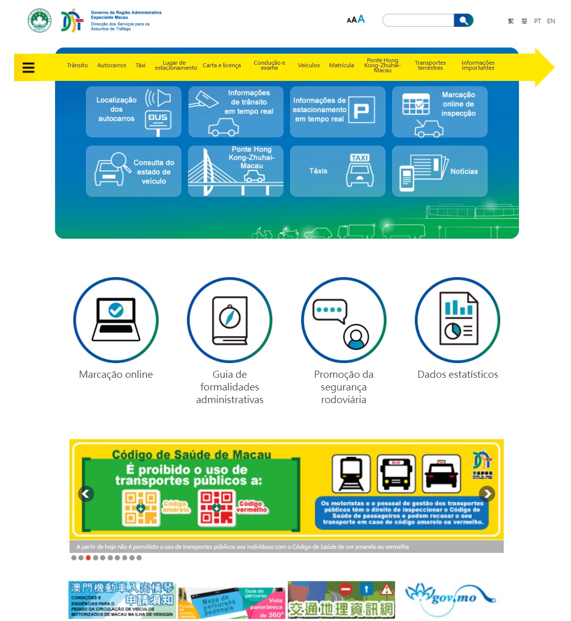 Depois de analisar os dados de navegação anteriores, o novo website concentra-se em satisfazer as necessidades do público relativas aos serviços, suas preferências e hábitos na utilização do website. A estrutura do website foi re-categorizada em 9 grandes categorias de serviço e 2 grandes categorias de informação. A página inicial será mais concisa e destacará os serviços mais procurados, disponibilizando informações em tempo real e facilitando o acesso dos usuários às informações de que necessitam. Os membros dos grupos de trabalho do Conselho Consultivo de Trânsito testaram a nova actualização e apresentaram as suas opiniões, das quais mereceram a atenção da Direcção dos Serviços para aperfeiçoamento futuro.