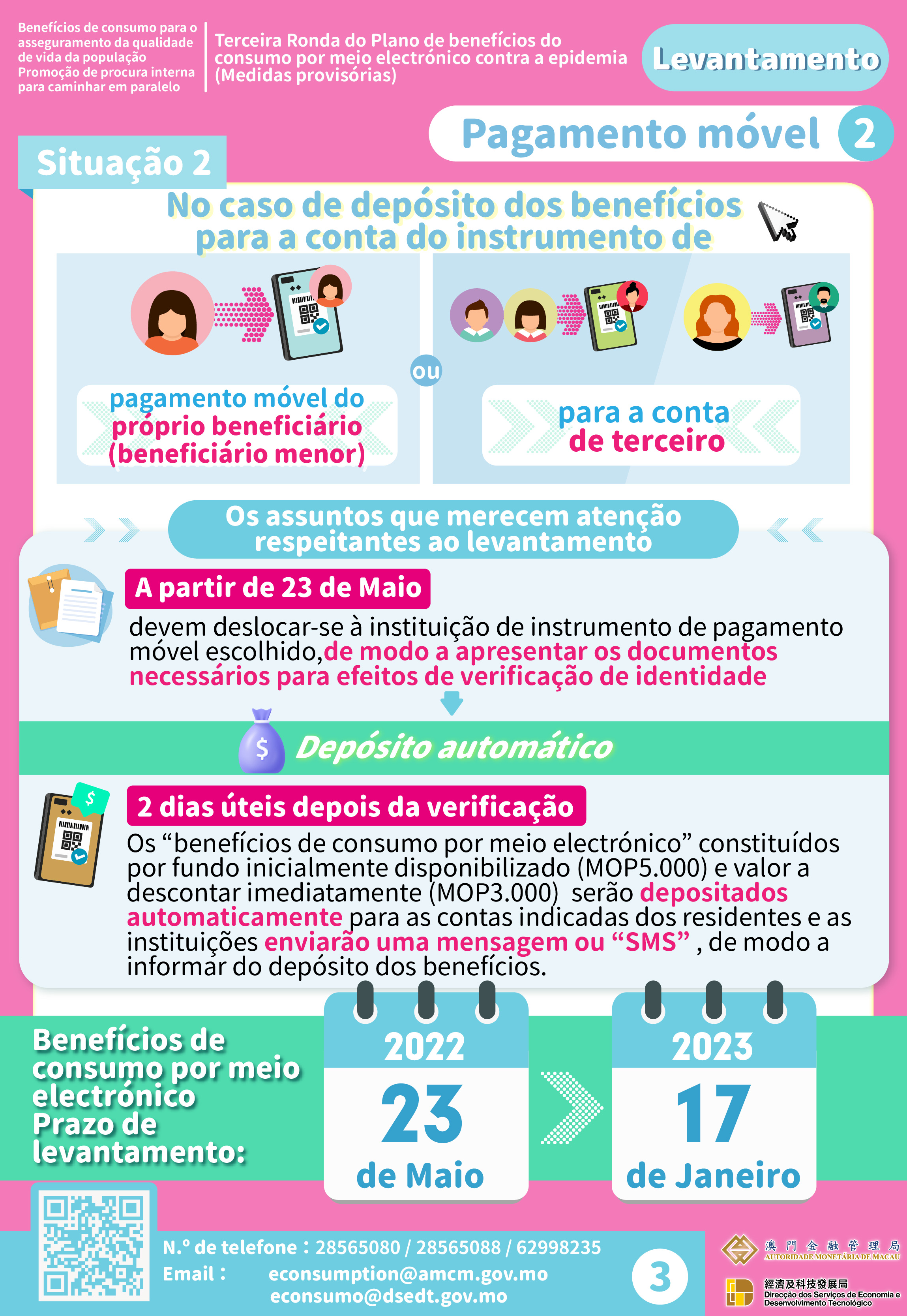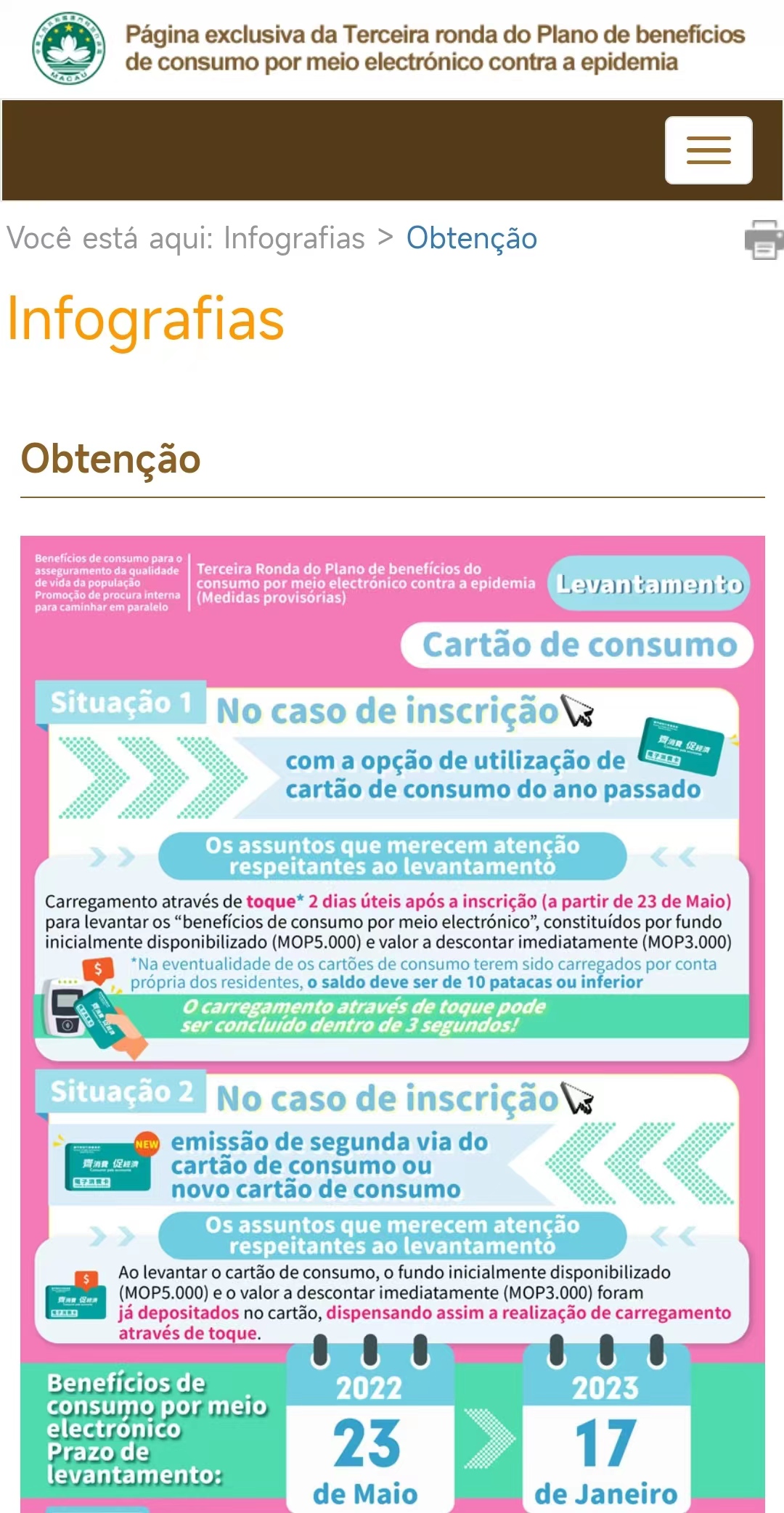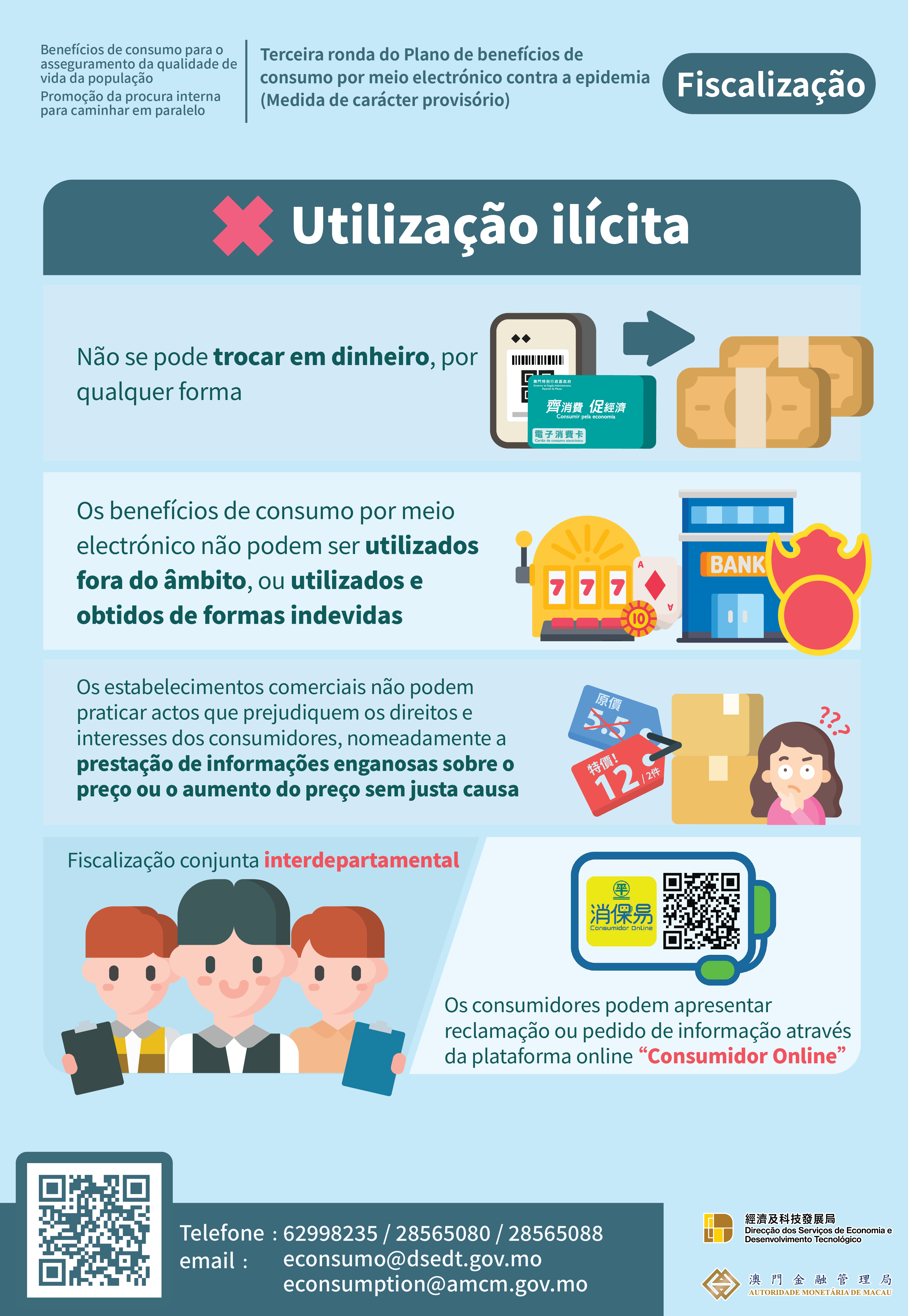 Em resposta à nova fase, a DSEDT e a AMCM actualizaram as infografias (relativas à forma de utilização), acrescentando o conteúdo sobre o alargamento do âmbito de utilização e a prorrogação do prazo de utilização. A par disso, foram acrescentados 2 capítulos, “Recebimento” e “Fiscalização”, que apresentam, respectivamente, o processo de recebimento de benefícios através do cartão de consumo e por meio de pagamento móvel, e as medidas de fiscalização da utilização de benefícios.