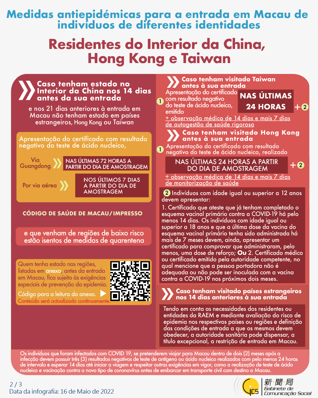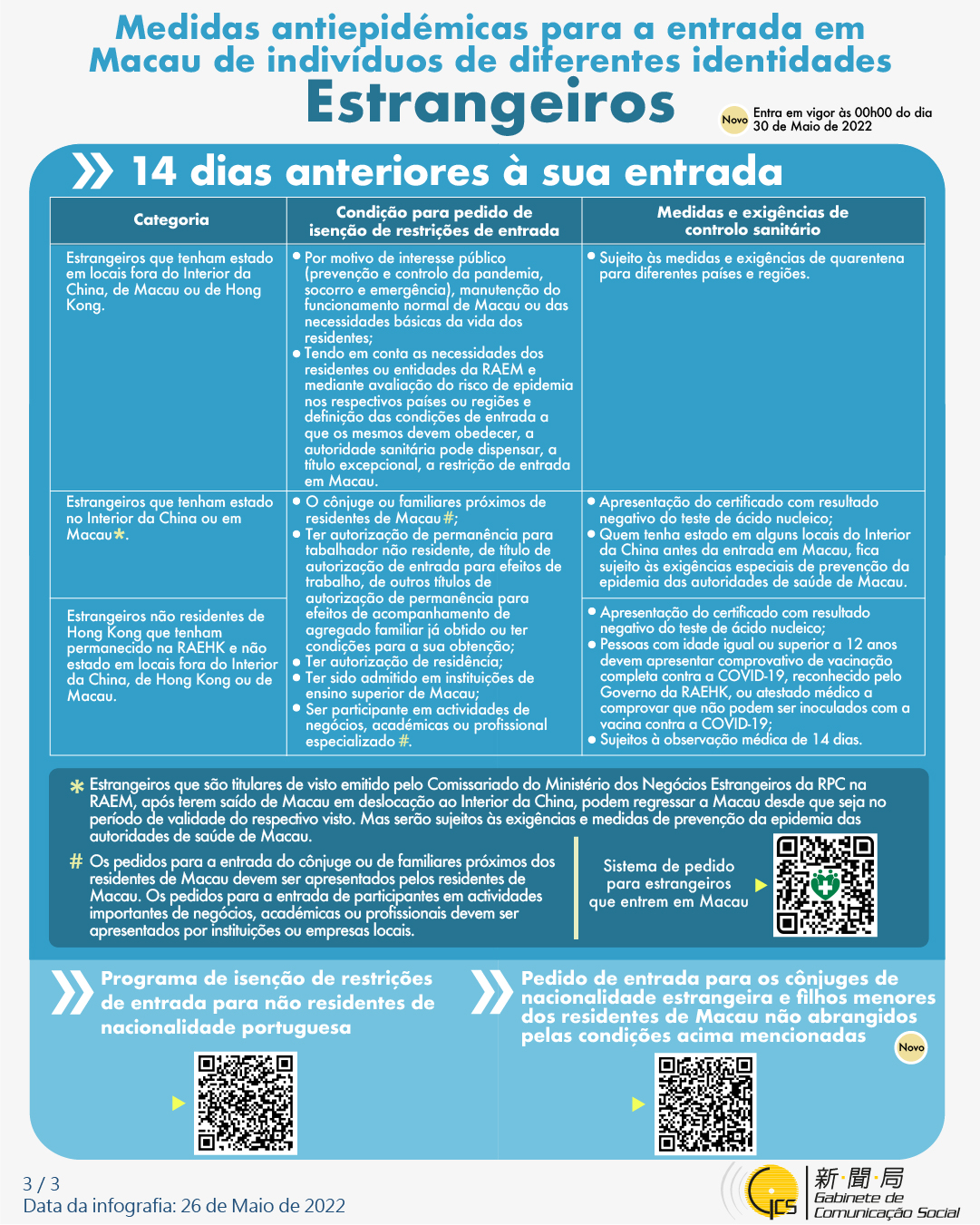 (Infografia)Medidas antiepidémicas para a entrada em Macau de indivíduos de diferentes identidades, actualizadas no dia 26 de Maio de 2022