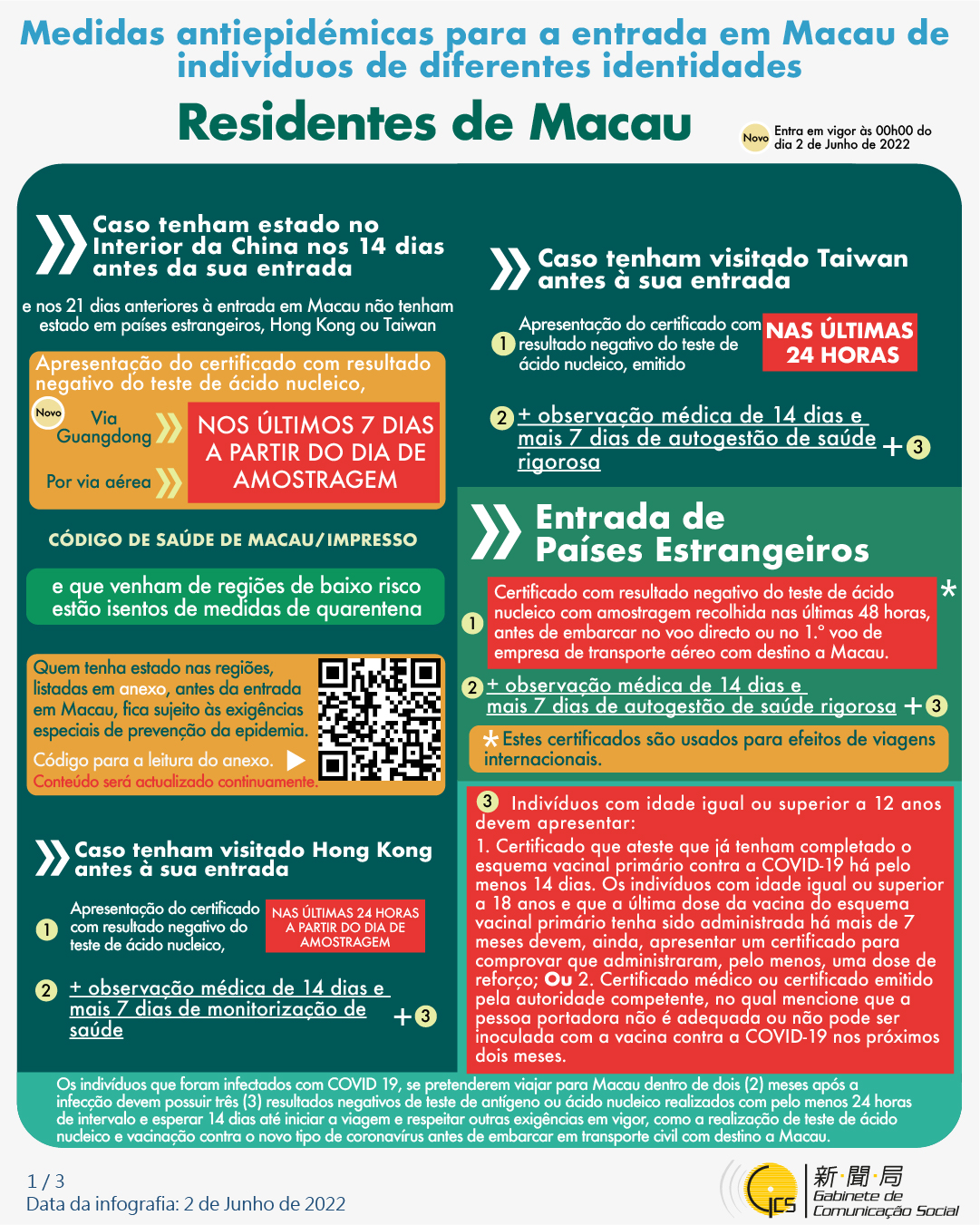 (Infografia)Medidas antiepidémicas para a entrada em Macau de indivíduos de diferentes identidades, actualizadas no dia 2 de Junho de 2022