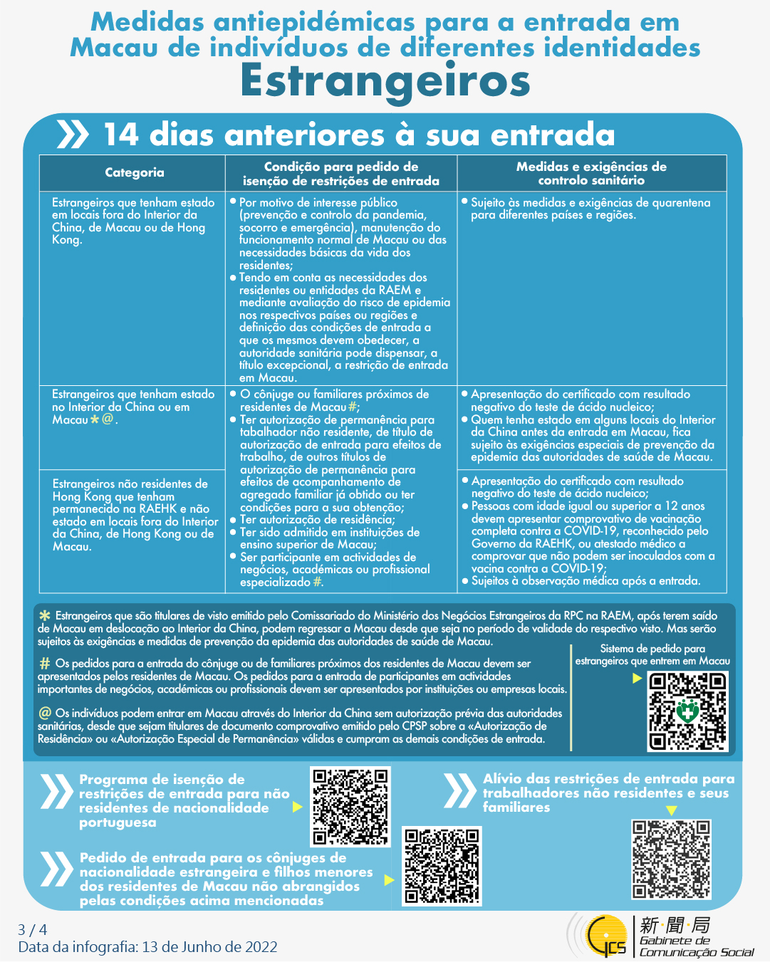 (Infografia)Medidas antiepidémicas para a entrada em Macau de indivíduos de diferentes identidades, actualizadas no dia 18 de Julho de 2022