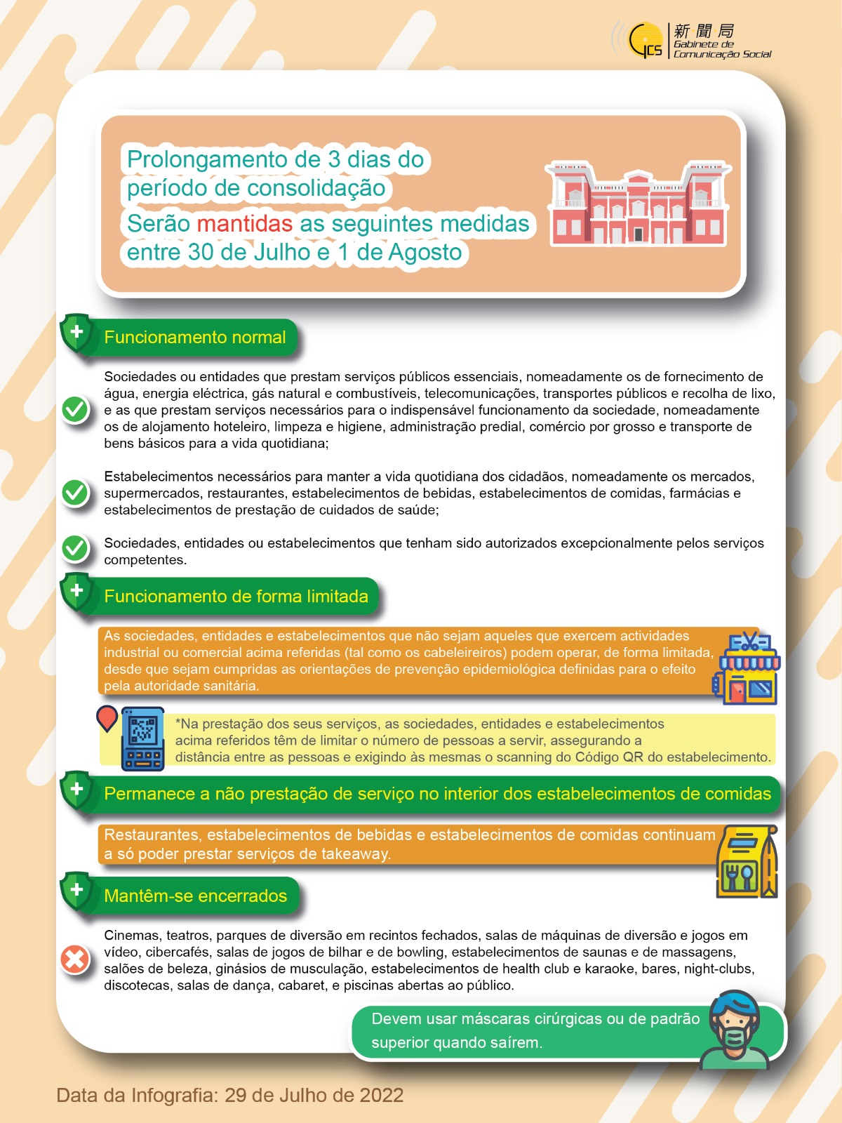 (Infografia) Prolongamento de 3 dias do período de consolidação - 30 de Julho a 1 de Agosto
