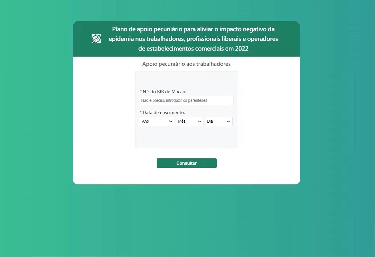 Os resultados são consultados com a introdução do n.º do Bilhete de Identidade de Residente de Macau e da data de nascimento. Para os indivíduos que não reúnem os requisitos, o sistema vai demonstrar a sua razão de ser, anexando, simultaneamente, o requerimento do apoio pecuniário aos trabalhadores integrados nas normas excepcionais, para efeitos de descarregamento.