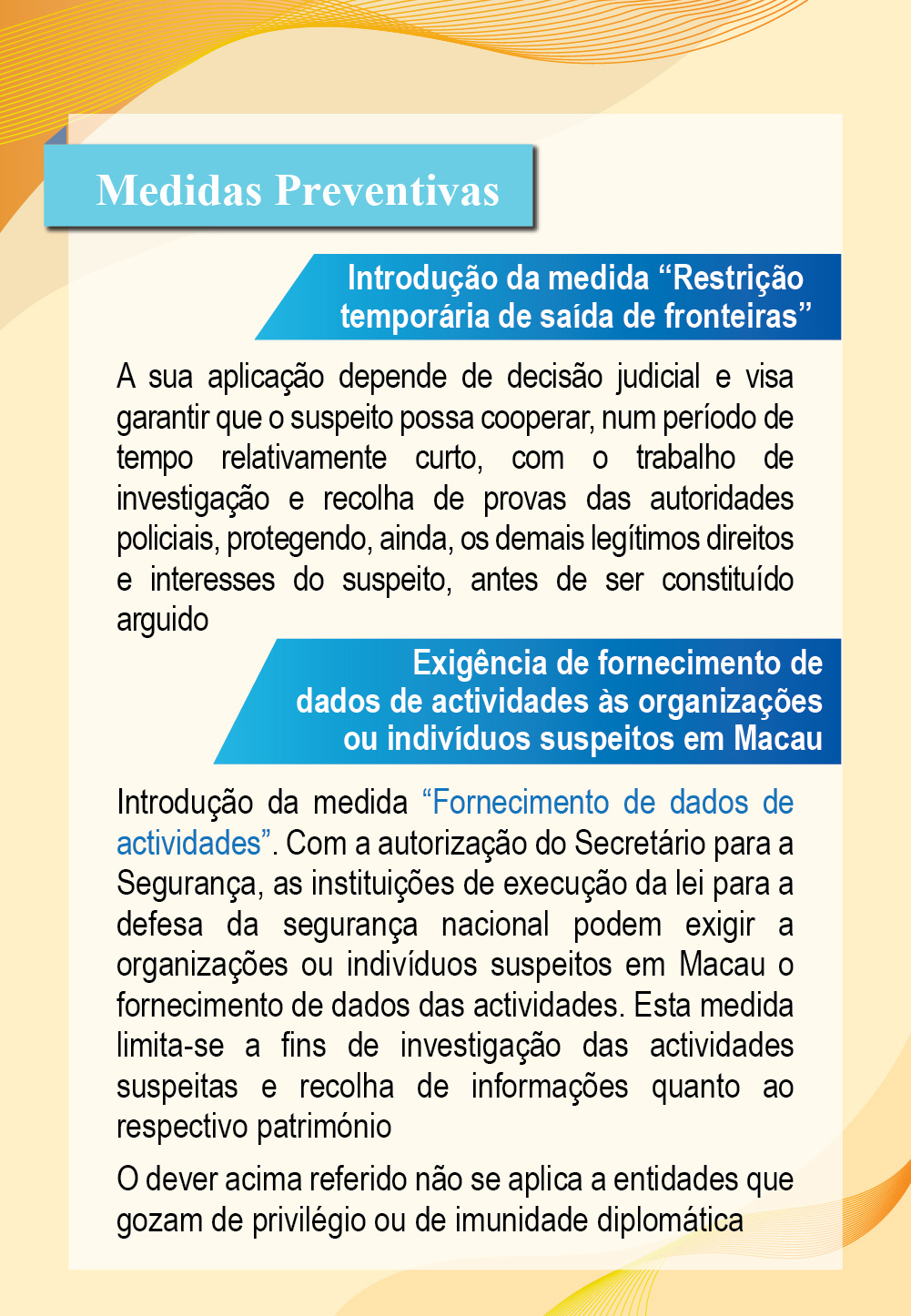 【Infografias】Consulta pública relativa à revisão da «Lei relativa à defesa da segurança do Estado» - Medidas Preventivas