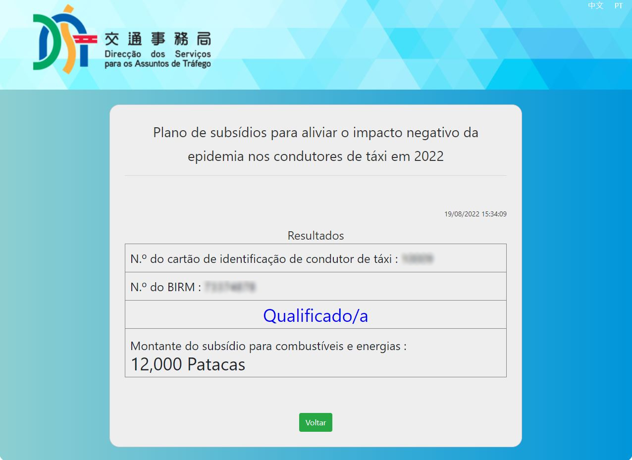 A Direcção dos Serviços para os Assuntos de Tráfego (DSAT) lançou hoje (dia 22), pelas 9 horas, o website de consulta online do «Plano de subsídios para aliviar o impacto negativo da epidemia nos condutores de táxi em 2022» (https://www.dsat.gov.mo/taxiquery2022/). Os condutores de táxi podem consultar, através desse website, as informações sobre a qualificação dos beneficiários e o montante do subsídio.