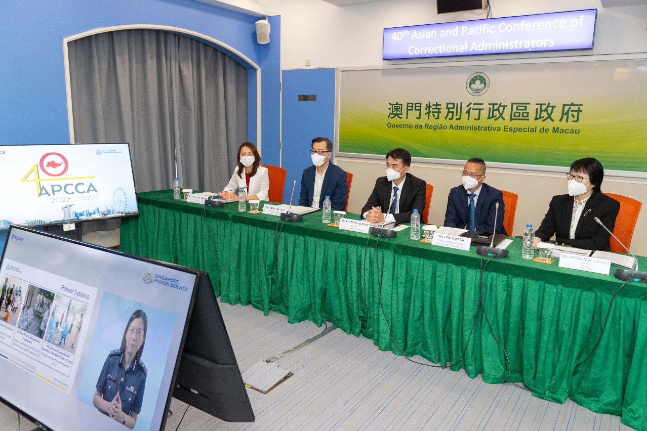 A Conferência de Dirigentes dos Serviços Correccionais da Ásia-Pacífico tem sido um encontro internacional e anual realizado pelos diferentes Serviços prisionais e correccionais dos países e regiões da Ásia-Pacífico, que permite a construção de um plataforma para os serviços congéneres a discussões aprofundadas e partilha das experiências sobre os assuntos de interesse comum, no sentido de promover conjuntamente o progresso das actividades correccionais. Devido à influência de COVID-19, a conferência foi suspensa em 2020 e 2021. Este ano, a conferência é organizada, em primeira vez, de forma online, pela Singapura, tendo num total de cinco tópicos na agenda para a conferência: “Challenges and initiatives in corrections”, “Managing prison emergencies”, “Providing effective programs for staff support and career development”, “Managing the release of prisoners and engaging the community in reintegration” e “Best practices in meeting the needs of offenders”. A delegação de Macau deu a apresentação de quatro dos cinco tópicos, mais ainda, introduzindo a situação mais actualizada dos trabalhos correccionais e da reintegração social de Macau, a eficácia das medidas implementadas face à epidemia do novo tipo de coronavírus, a colaboração entre o Governo de Macau e ONGs para a organização dos diversos tipos programas de reinserção social e as medidas de supervisão e serviços de apoio a reclusas.