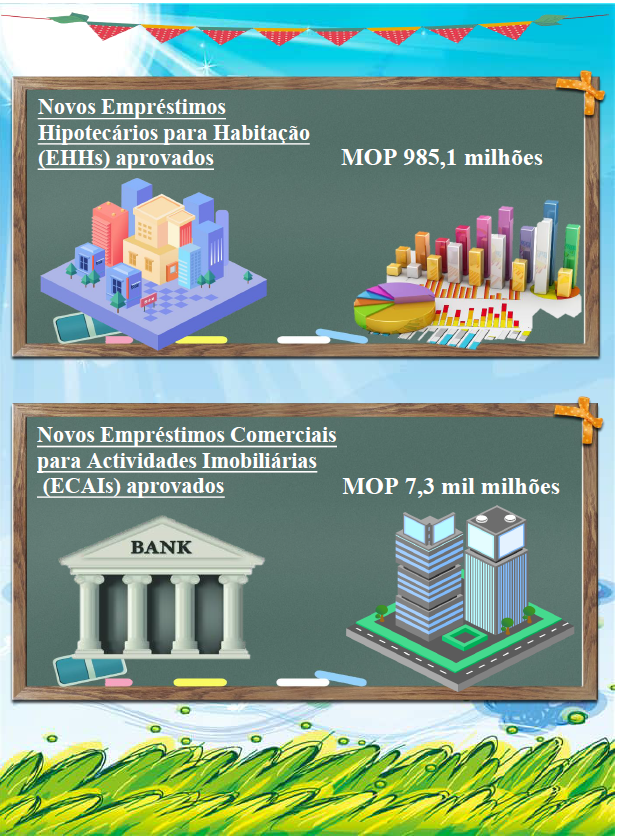 De acordo com as estatísticas publicadas hoje pela AMCM, em Outubro de 2022, os novos empréstimos hipotecários para habitação (EHHs) registaram decrescimento em relação ao mês anterior e os novos empréstimos comerciais para actividades imobiliárias (ECAIs) aprovados registaram crescimento. Registaram-se declínio no saldo bruto dos EHHs e acréscimo nos ECAIs, quando comparado com o mês anterior.