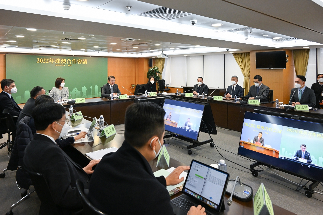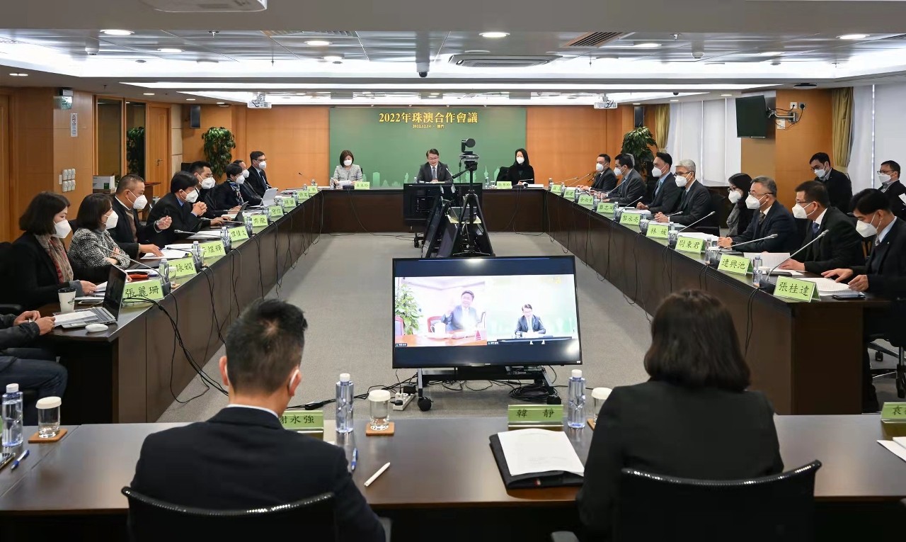 Em 14 de Dezembro, na parte da tarde, a Reunião de Cooperação Zhuhai-Macau foi realizada, por meio de videoconferência, em Zhuhai e Macau, tendo como linha de conta a implementação efectiva do espírito do 20.º Congresso do Partido Comunista Chinês (PCC) e com tema incidido sobre o “Empenho na prestação de apoio e serviços em prol da construção da Zona de Cooperação Aprofundada entre Guangdong e Macau em Hengqin e na promoção do desenvolvimento de alta qualidade da cooperação entre Zhuhai e Macau”, de modo a serem traçados em conjunto, planos para impulsionar a cooperação bilateral, em diversas vertentes, rumo a um novo patamar de alto nível. O Secretário-Adjunto do Comité Municipal de Zhuhai do PCC e Governador Municipal de Zhuhai, Huang Zhihao, e o Secretário para a Economia e Finanças do Governo da Região Administrativa Especial de Macau, Lei Wai Nong, presidiram conjuntamente a reunião, proferindo também discursos na mesma. Esta reunião contou ainda com a presença, como convidados especiais, dos representantes do departamento económico do Gabinete de Ligação do Governo Central na RAEM, da Zona de Cooperação Aprofundada, dos Serviços de Alfândega de Gongbei, da Estação Geral de Inspecção Fronteiriça de Zhuhai e da Direcção dos Assuntos Marítimos de Zhuhai.