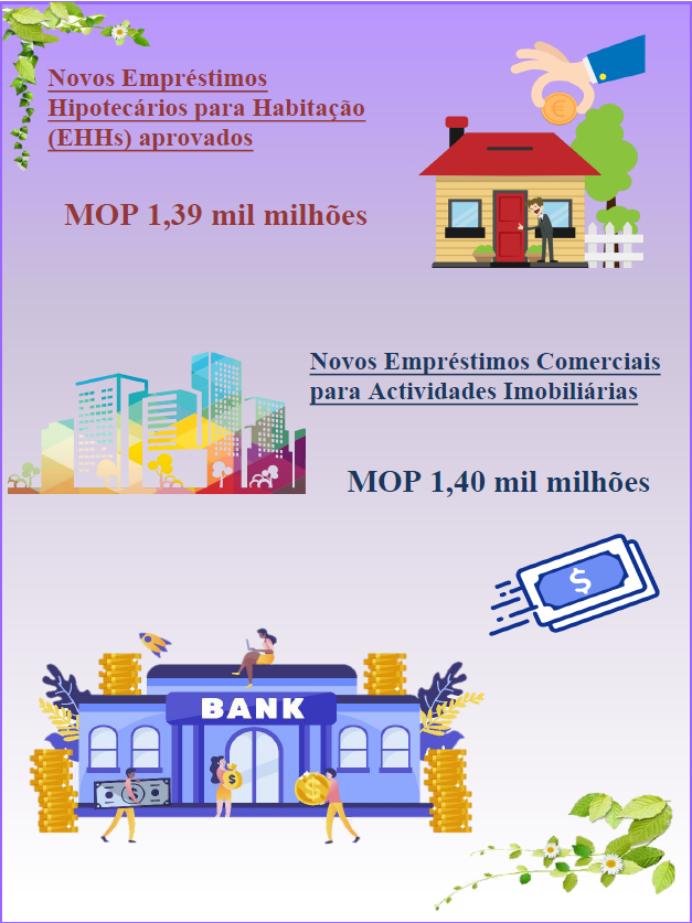 Em Novembro de 2022, os novos EHHs aprovados pelos bancos de Macau cresceram 40,9% em relação ao mês transacto, até ao valor de MOP1,39 mil milhões. Dos quais, os novos EHHs aprovados aos residentes locais que representavam 99,5% do total, cresceram 41,0% e atingiram MOP1,38 mil milhões; o componente não-residente cresceu 20,7% para MOP7,3 milhões. De Setembro a Novembro de 2022, o número médio mensal dos novos EHHs aprovados atingiu MOP1,43 mil milhões, correspondendo a uma descida de 6,1% em comparação com o período anterior (De Agosto a Outubro de 2022).