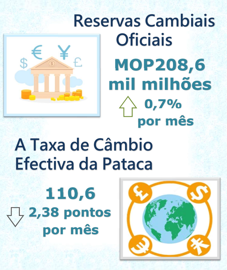 A taxa de câmbio efectiva da pataca, ponderada pelas suas quotas do comércio, foi de 110,6 em Dezembro de 2022, registaram decrescimento de 2,38 pontos e crescimento de 6,83 pontos, respectivamente, sobre os dados do mês anterior e relativos a Dezembro de 2021, implicando que globalmente, a pataca caiu mensalmente face às moedas dos principais parceiros comerciais de Macau, mas subiu anualmente.