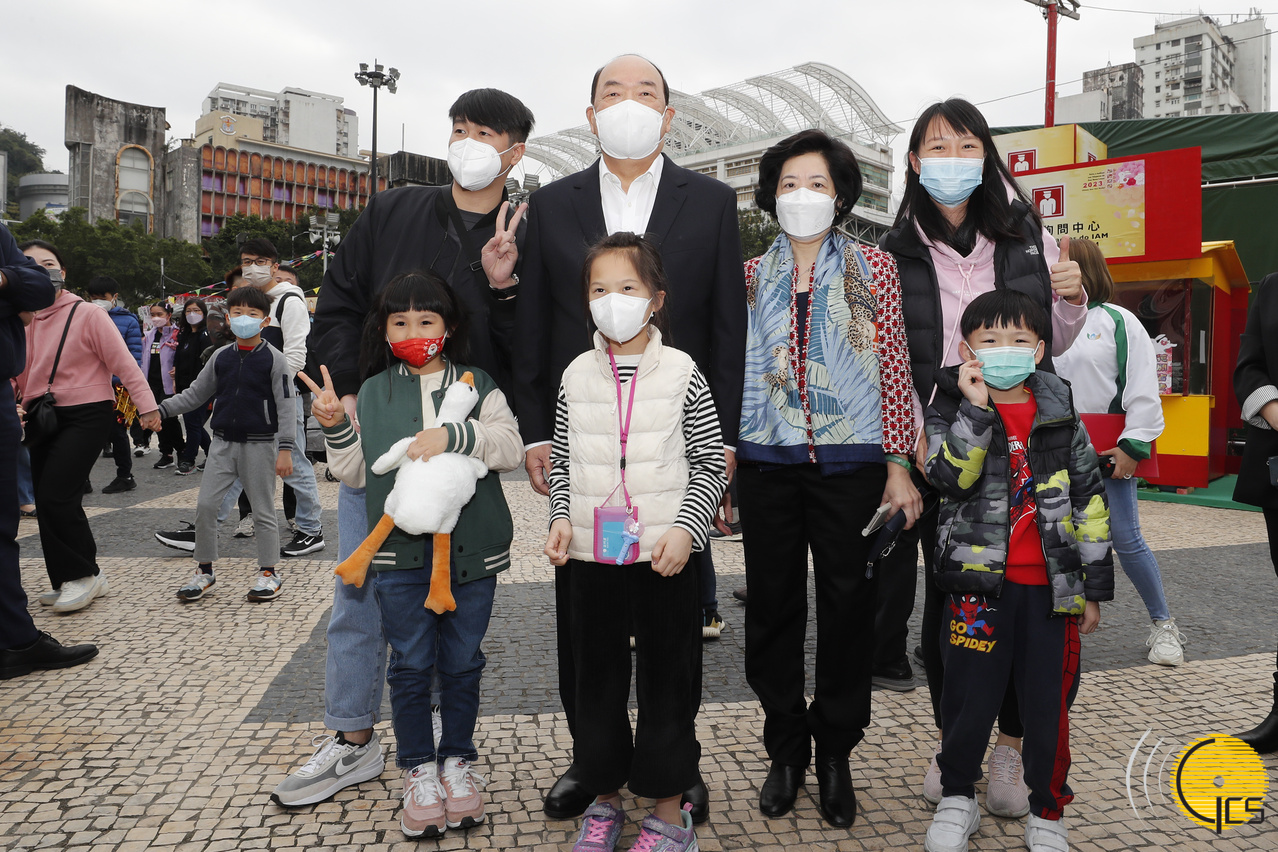 O Chefe do Executivo e a sua esposa foram convidados para tirarem fotografias com crianças e seus pais. Ho Iat Seng aproveitou para manifestar votos de felicidades pessoais e aos seus familiares.