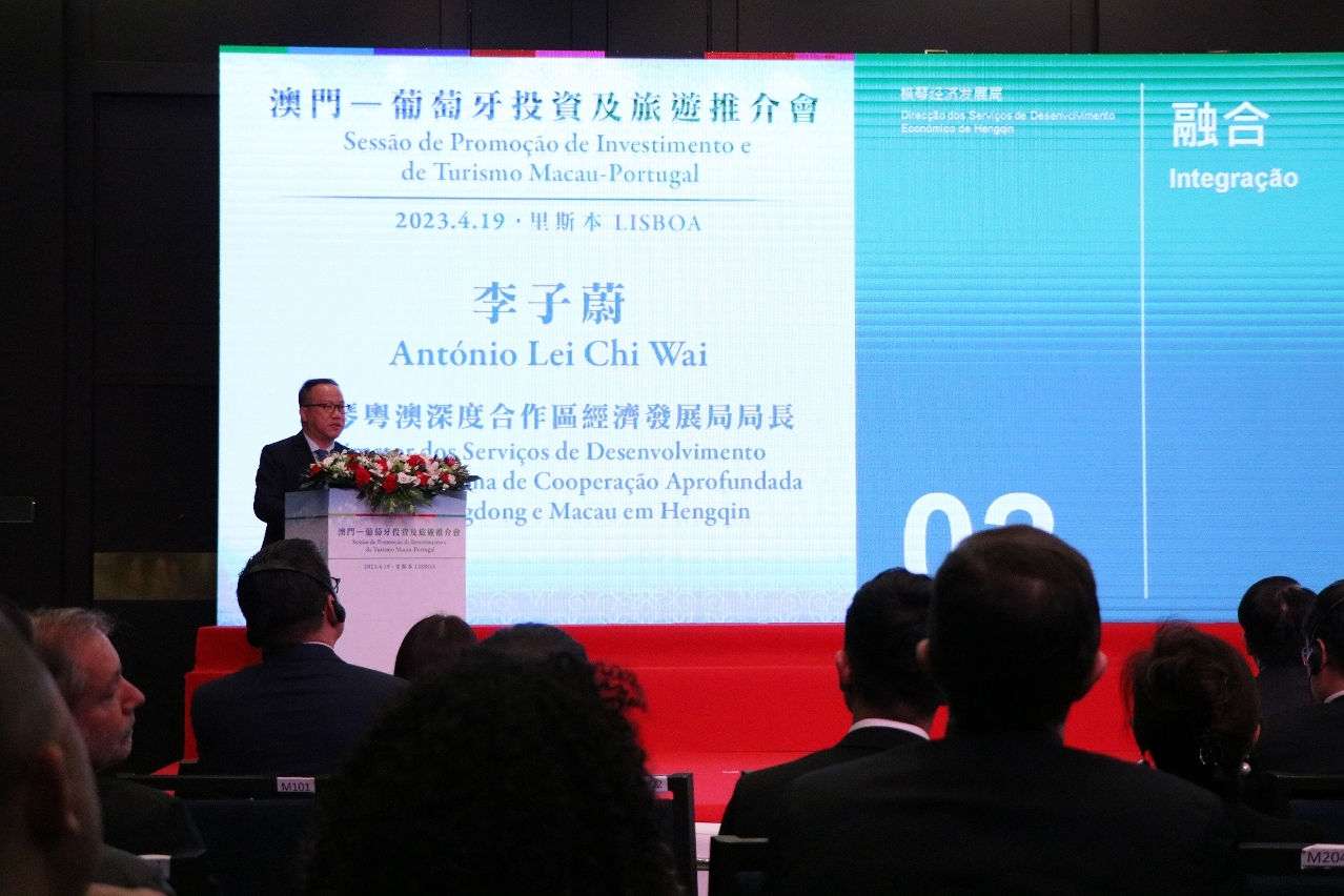 Como evento especial de promoção económica, comercial e turística da visita do Governo da RAEM a Portugal, realizou-se no dia 19 de Abril, hora local, a Sessão de promoção sobre o Investimento e Turismo Macau-Portugal. O Chefe Executivo de Macau, Ho Iat Seng, o Embaixador Extraordinário e Plenipotenciário da China em Portugal, Zhao Bentang, Secretário para a Economia e Finanças, Lei Wai Nong, Secretário para os Transportes e Obras Públicas, Raimundo Arrais do Rosário, Nie Xinping, director adjunto da Comissão Executiva da Zona de Cooperação Aprofundada entre Guangdong e Macau em Hengquin, Su Kun, Maria Helena de Senna Fernandes, Directora da Direcção dos Serviços de Turismo de Macau, U U Sang, Presidente do Instituto de Promoção do Comércio e do Investimento de Macau, marcaram presença no evento.