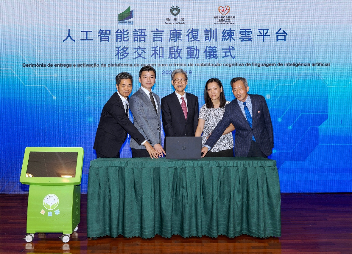 Em articulação com o desenvolvimento dos cuidados de saúde inteligentes do Governo da RAEM, e com intuito de reforçar os trabalhos sobre o sistema de terapia cognitiva para a linguagem na infância, foi desenvolvido pelos Serviços de Saúde, em colaboração com a Universidade de Jinan um sistema de terapia da linguagem com assistência da inteligência artificial, e no 2022, já foi concluída a criação de uma plataforma de nuvem para o treino de reabilitação cognitiva de linguagem de inteligência artificial, assistido por computador.