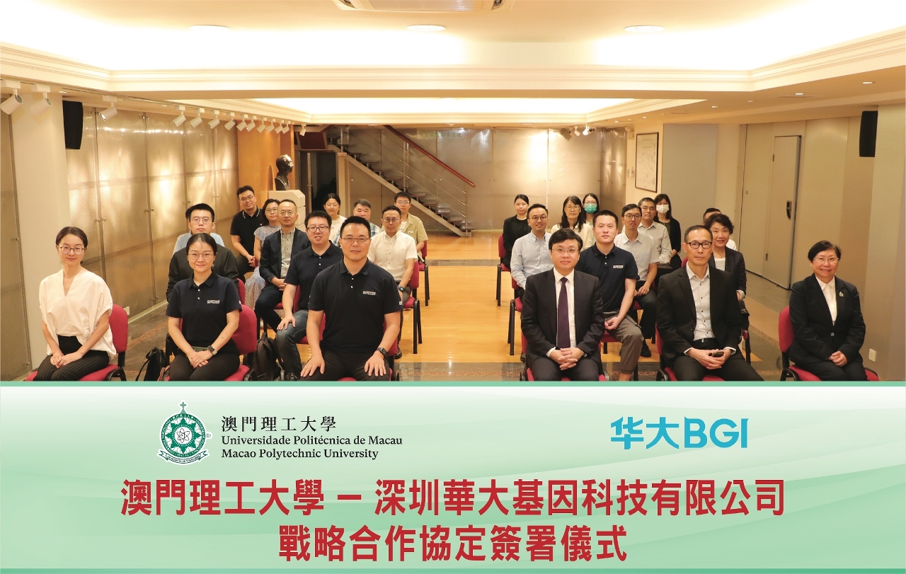 Em estreita articulação com a estratégia de desenvolvimento da diversificação adequada da economia de Macau “1 + 4”, a promoção do desenvolvimento da indústria da Big Health em Macau, a formação de quadros altamente qualificados e a realização de investigações inovadores, realizou-se, no dia 12 de Setembro, na Universidade Politécnica de Macau (UPM), a cerimónia de assinatura do “Acordo de Cooperação Estratégica” entre a UPM e a BGI Genomics Shenzhen Technology Co., Ltd.(BGI). O presente Acordo tem como objectivo, criar, em conjunto, uma base de investigação científica e de ensino, promovendo a contribuição para o desenvolvimento de Macau e da Zona da Grande Baía, através da cooperação universidade-empresa.