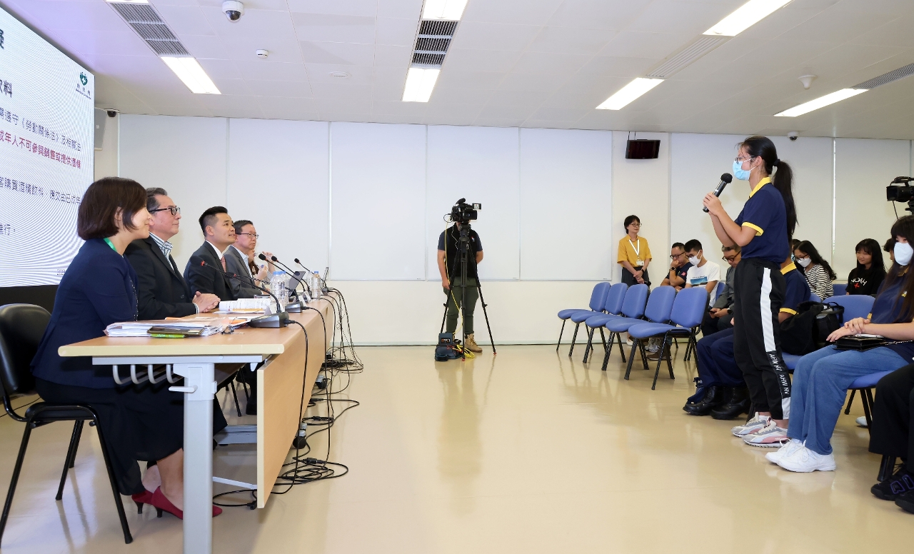 Em resposta à questão sobre o consumo de bebidas alcoólicas por menores em cerimónias religiosas ou actividades culturais tradicionais, o Director dos Serviços de Saúde, Lo Iek Long, frisou que os Serviços de Saúde respeitam absolutamente as diferentes cerimónias religiosas e actividades culturais, mas o consumo de bebidas alcoólicas por menores em lugares públicos não é permitida, daí os menores podem considerar a sua substituição por outras bebidas; relativamente à compra de bebidas alcoólicas por alunos adultos com uniforme escolar, o mesmo responsável indicou que, apesar de este acto não estar sujeito às restrições legais, poderá ter um impacto negativo na imagem da escola e na imagem da sociedade. Propõe-se que os alunos adultos não comprem bebidas alcoólicas com uniforme escolar.