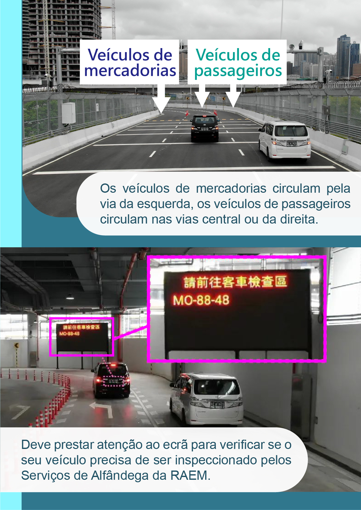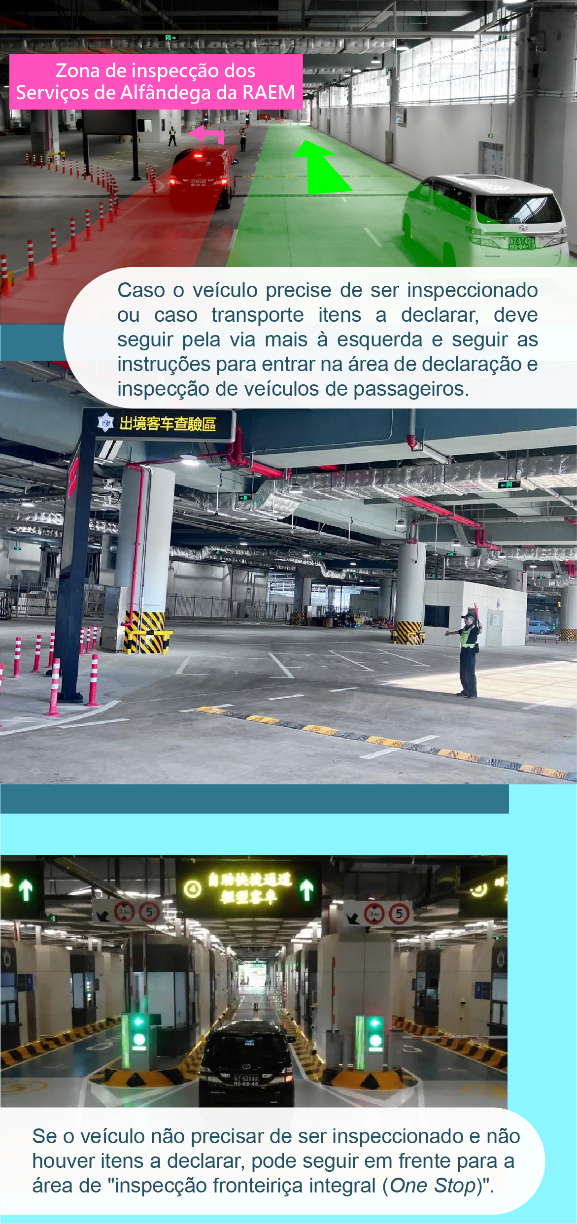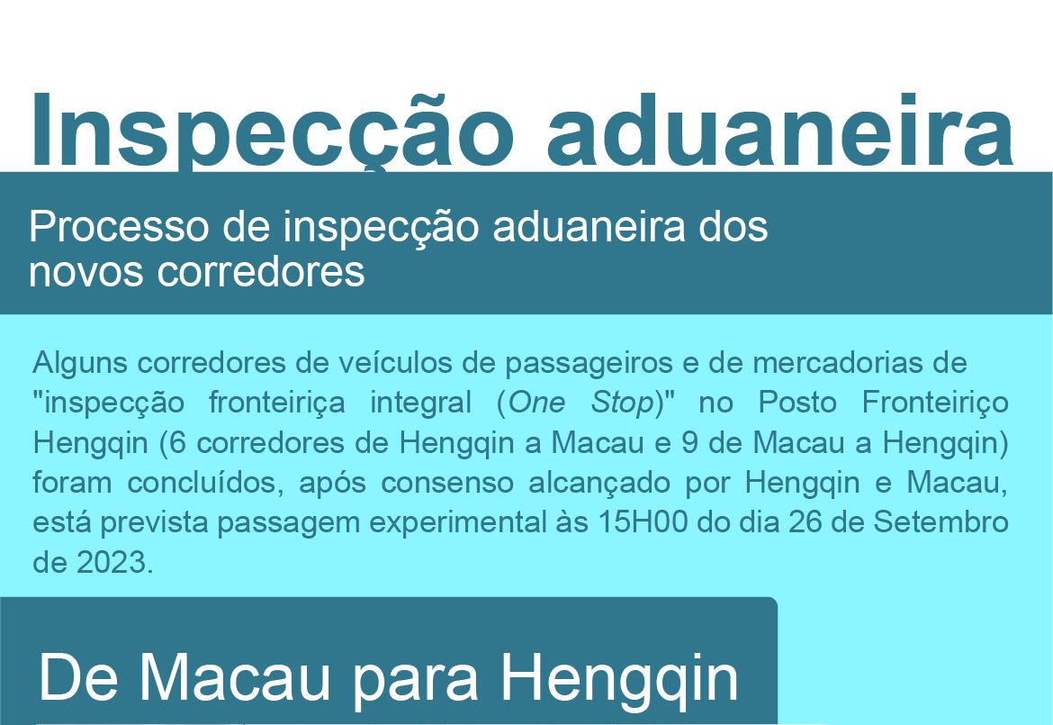 • 【Inspecção aduaneira】 Corredores de "inspecção fronteiriça integral (One Stop)" do Posto Fronteiriço Hengqin