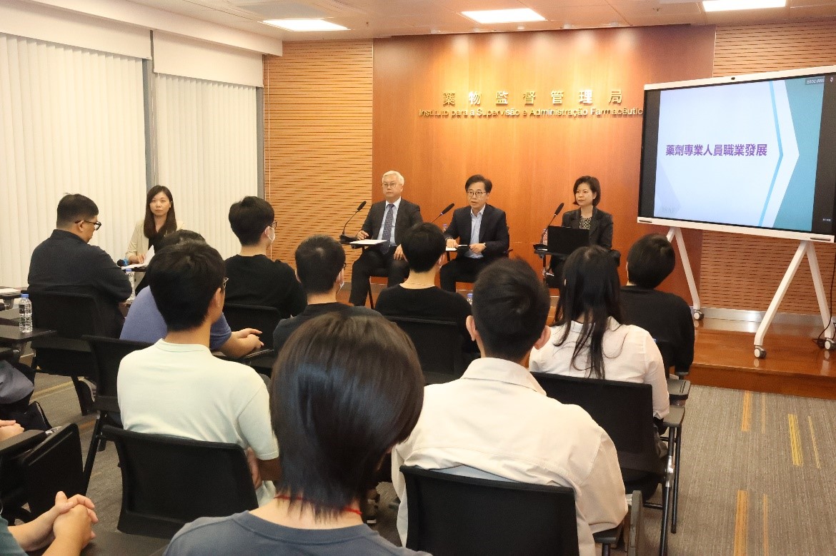 A chefe Cheang Im Hong apresentou o âmbito do exercício profissional, os conteúdos funcionais e as perspectivas profissionais dos farmacêuticos, dos farmacêuticos de medicina tradicional chinesa e dos ajudantes técnicos de farmácia. Para mais, deu uma breve apresentação sobre as medidas favoráveis para os profissionais farmacêuticos de Macau a exercer a profissão na Zona de Cooperação Aprofundada entre Guangdong e Macau em Hengqin, para que os estagiários conheçam as perspectivas futuras da profissão e façam um bom planeamento de carreira.