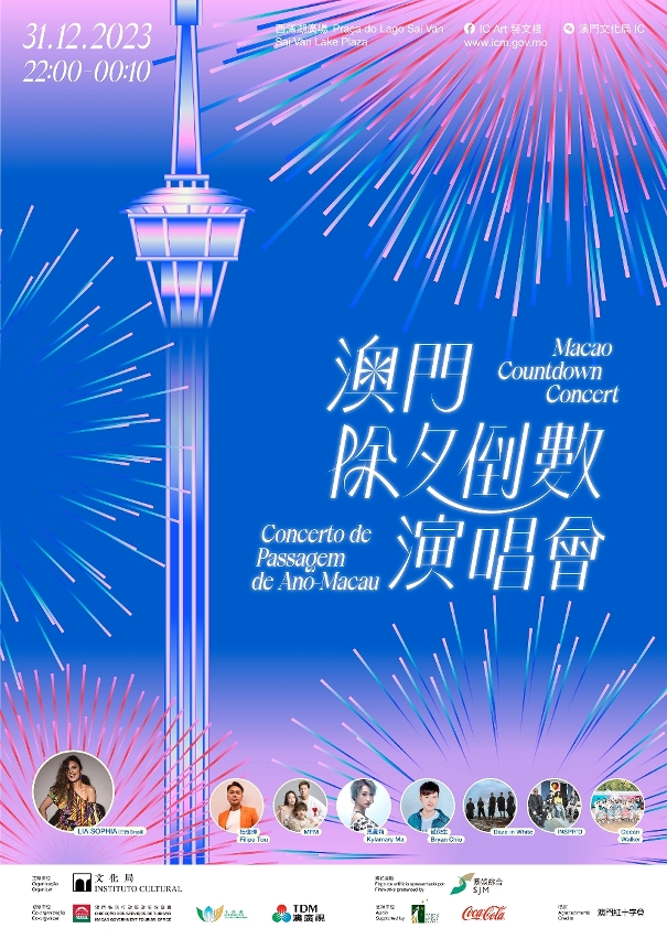 Organizados pelo Instituto Cultural e co-organizados pela Direcção dos Serviços de Turismo (DST), pelo Instituto para os Assuntos Municipais (IAM) e pela TDM – Teledifusão de Macau, o “Concerto da Passagem de Ano – Macau 2023”, com o lançamento de fogo-de-artifício apresentado pela SJM Resorts, S.A., e a “Festa da Passagem de Ano – Taipa 2023”, terão lugar na noite de 31 de Dezembro, na Praça do Lago Sai Van em Macau e nas Casas da Taipa, respectivamente. Na altura da contagem decrescente para a entrada no novo ano de 2024, será realizado um espectáculo de fogo-de-artifício deslumbrante por cima da Torre de Macau, sendo convidadas a cantora brasileira Lia Sophia no “Concerto da Passagem de Ano – Macau 2023” e a cantora de Hong Kong, Joey Wong (JW) na “Festa da Passagem de Ano – Taipa 2023” para encerrar os espectáculos com chave de ouro, e contando ainda com a presença de vários grupos artísticos locais para dar as boas-vindas ao ano novo com os residentes e turistas.
