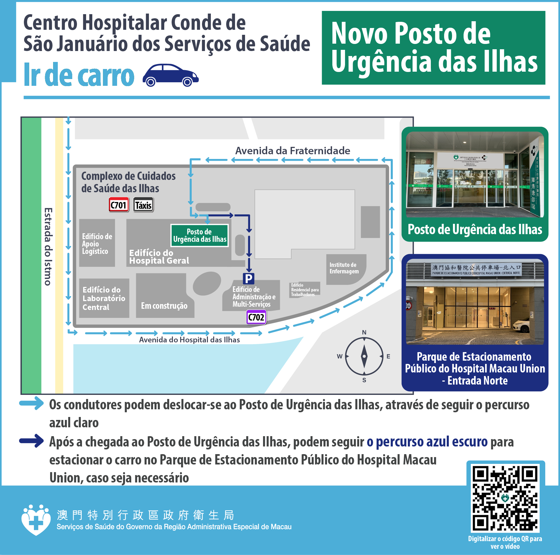 No Posto de Urgência das Ilhas do CHCSJ, instalado no Hospital da Universidade de Ciência e Tecnologia de Macau (localizado na Avenida Wai Long, Taipa) pelos Serviços de Saúde, os serviços de inscrição serão suspensos na mesma hora (no dia 21, pelas 10h00), o funcionamento do posto referido será oficialmente suspenso após a conclusão do tratamento dos utentes inscritos no local.