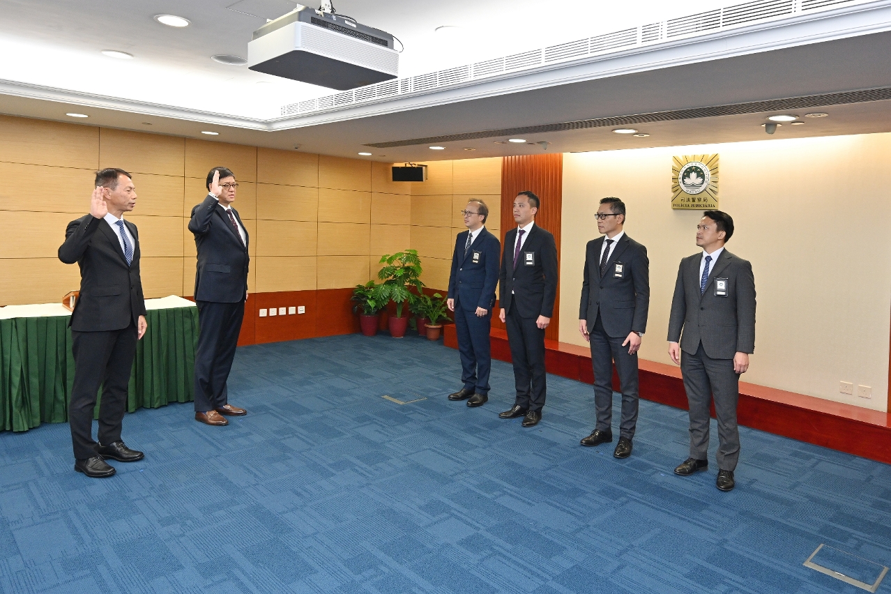A PJ realizou a cerimónia da tomada de posse dos Inspectores Chefes a qual teve lugar em 4 de Janeiro de 2024, e foi presidida pelo director, SIT Chong Meng, e contou com a presença dos subdirectores, LAI Man Vai, SOU Sio Keong e SAM Kam Weng, e das chefias de diversas subunidades, perante os quais os inspectores de 1.ª classe IU Kong Fai e VONG Peng Kuai prestaram juramento como Inspectores Chefes.
