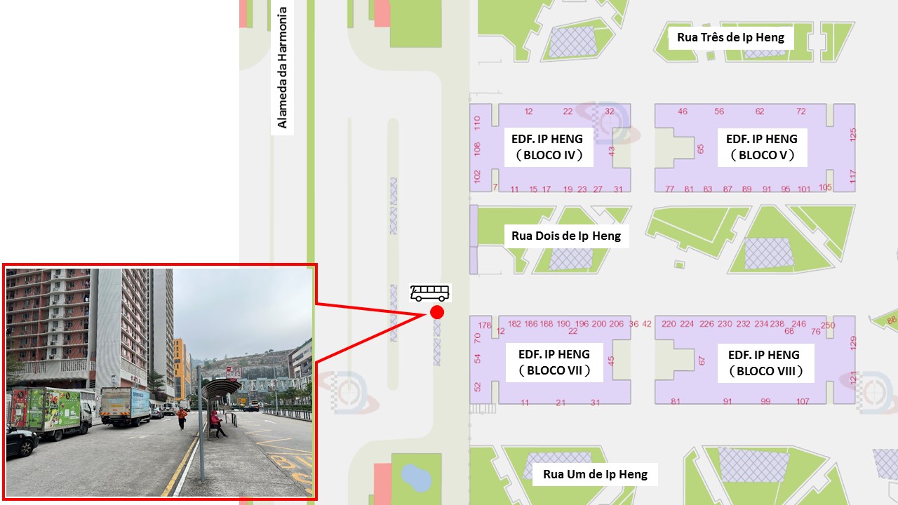 1. Zona de carga e descarga e tomada e largada de passageiros junto à Alameda da Harmonia, Coloane (perto do Bloco 7 do Edifício Ip Heng)