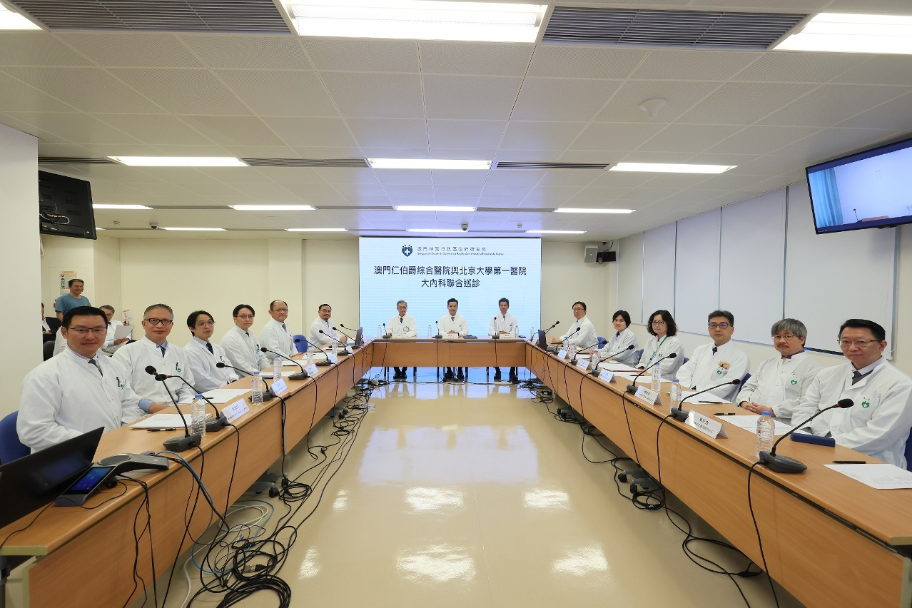 O Primeiro Hospital da Universidade de Pequim é o primeiro hospital nacional da China, tendo 109 anos de história, caracterizado pelo melhor diagnóstico e tratamento clínico, alto nível de investigação científica, e forte consciência pedagógica. Estiveram presentes nesta consulta médica conjunta os representantes dos Serviços de Saúde: os Médicos-Adjuntos do Centro Hospitalar Conde de São Januário, Dr. Tai Wa Hou, Dr. Pang Fong Kuong e Dr. Chang Tam Fei, a coordenadora da Academia Médica, Dra. Lam Kuo, os responsáveis de serviços/ unidades dos Serviços de Medicina Interna, Nefrologia, Geriatria do Centro Hospitalar Conde de São Januário, o chefe da equipa para acreditação clínica do hospital e de formação de trabalho, Dr. Liang Sung Wen, médicos especialistas e médicos residentes da Área de Sistema de Medicina Interna, entre outros; os representantes do Primeiro Hospital da Universidade de Pequim: chefe e subchefe do Serviço de Medicina Interna, Dr. Li Hai Chao e Dr. Liu Gang, chefes, subchefes, médicos especialistas, médicos residentes e médicos pós-graduados de diversos serviços/ unidades, da Medicina Interna.