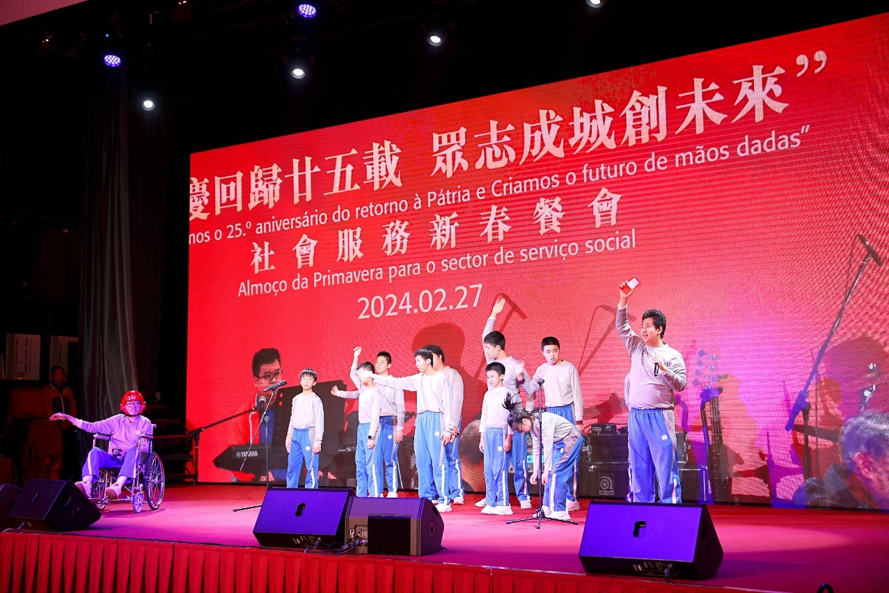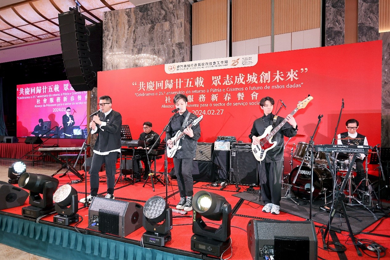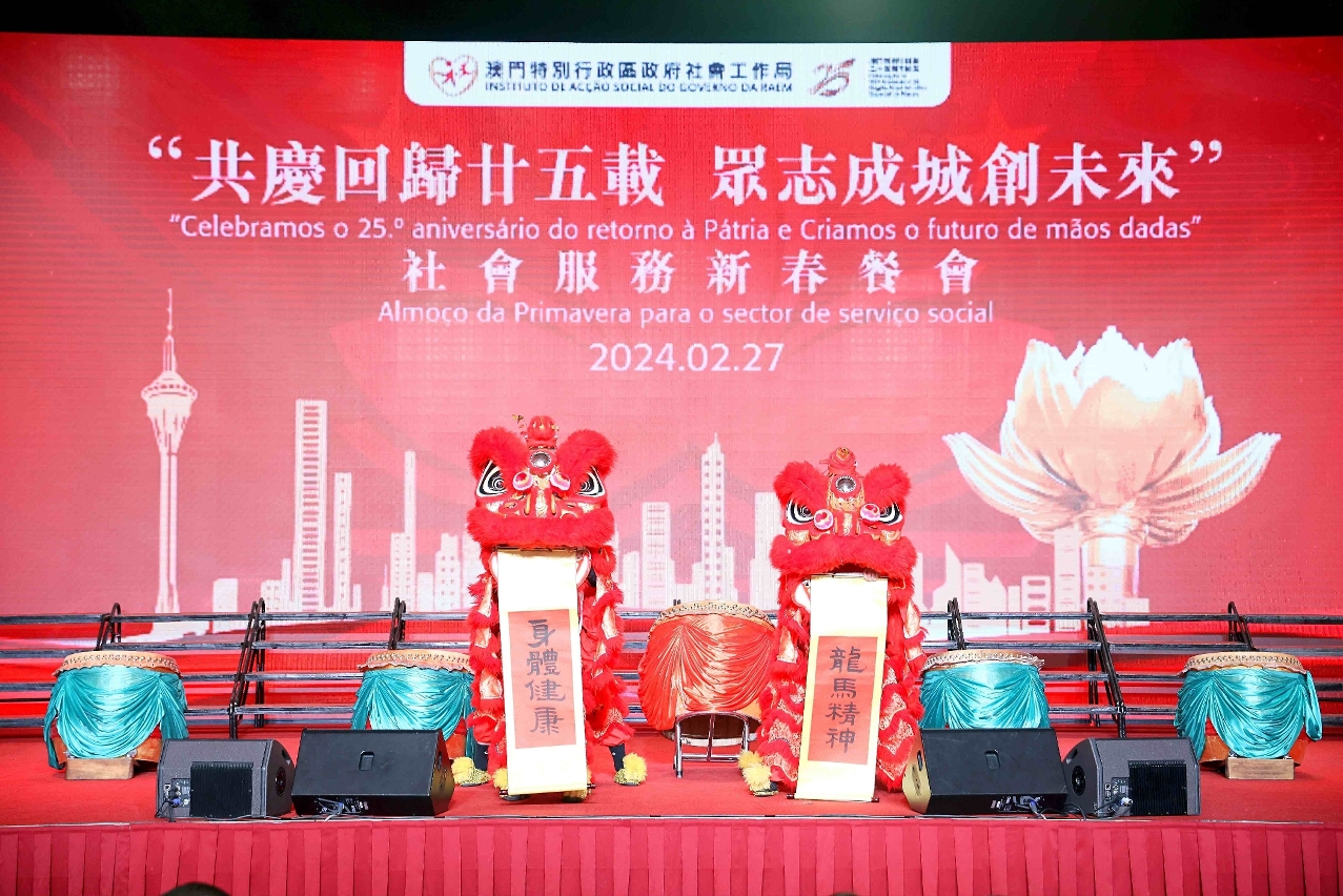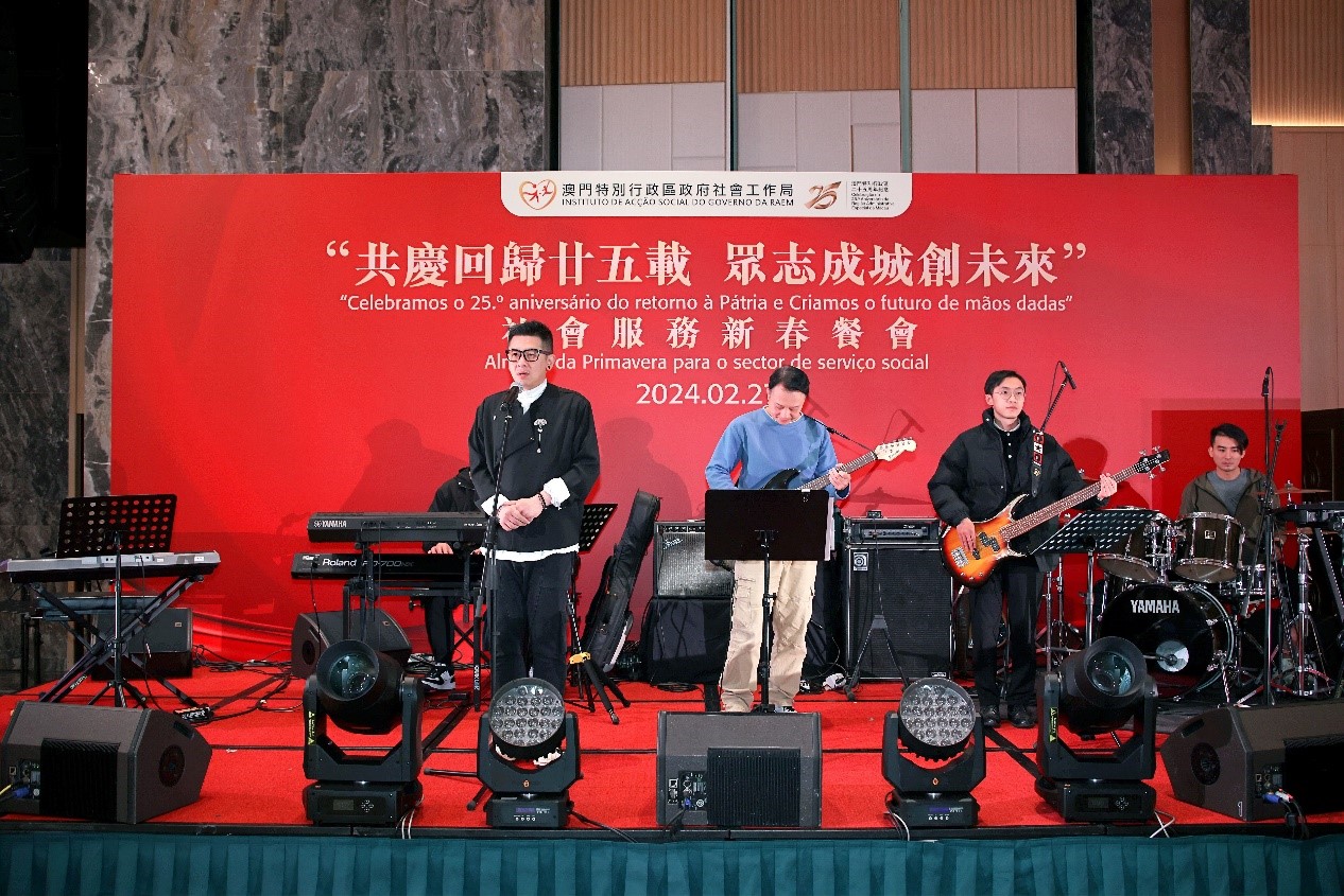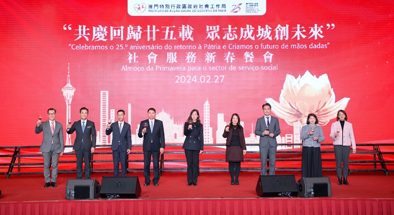 O Instituto de Acção Social (IAS) realizou hoje (dia 27) o almoço de primavera para o sector do serviço social – “Celebramos o 25.º Aniversário do Retorno de Macau à Pátria e Criamos o futuro de mãos dadas”, no qual se reuniram mais de 600 representantes das instituições particulares de solidariedade social e participantes dos sectores sociais por ocasião das celebrações do ano novo lunar. A cerimónia de abertura do almoço de primavera foi presidida pela Secretária para os Assuntos Sociais e Cultura, Ao Ieong U, pelo Secretário-Geral Adjunto, também Chefe do Departamento dos Assuntos Sociais do Gabinete de Ligação do Governo Popular Central na RAEM, Huang Huagai, pela Chefe do Gabinete da Secretária para os Assuntos Sociais e Cultura, Ho Ioc San, pelo Presidente do IAS, Hon Wai, pelo Director da Direcção dos Serviços de Educação e de Desenvolvimento da Juventude, Kong Chi Meng, pelo Director dos Serviços de Saúde, Lo Iek Long e pela Presidente Substituta do Instituto Cultural, Cheong Lai San.