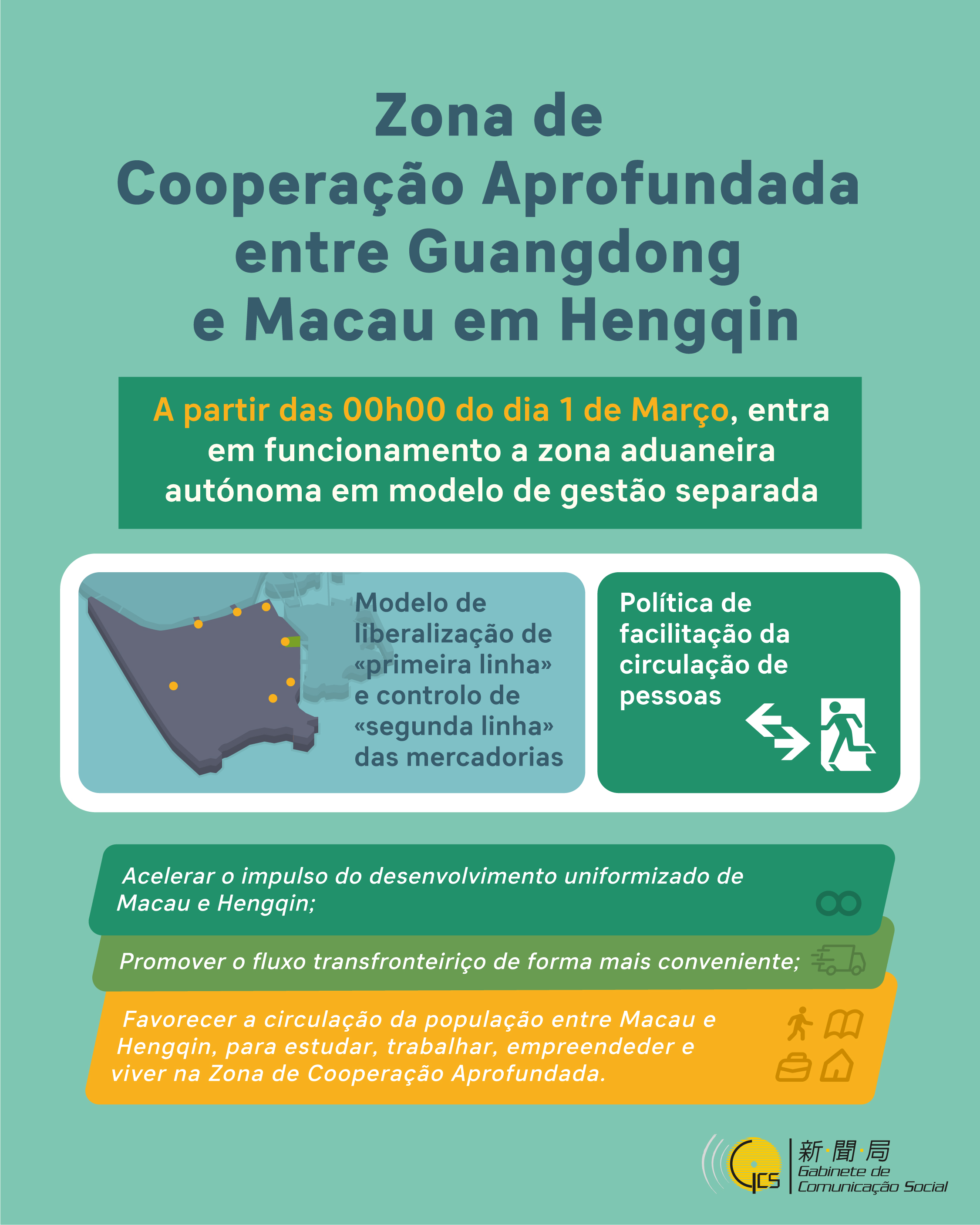 • A Zona de Cooperação Aprofundada entre Guangdong e Macau em Hengqin formalmente entra em funcionamento como zona aduaneira autónoma em modelo de gestão separada