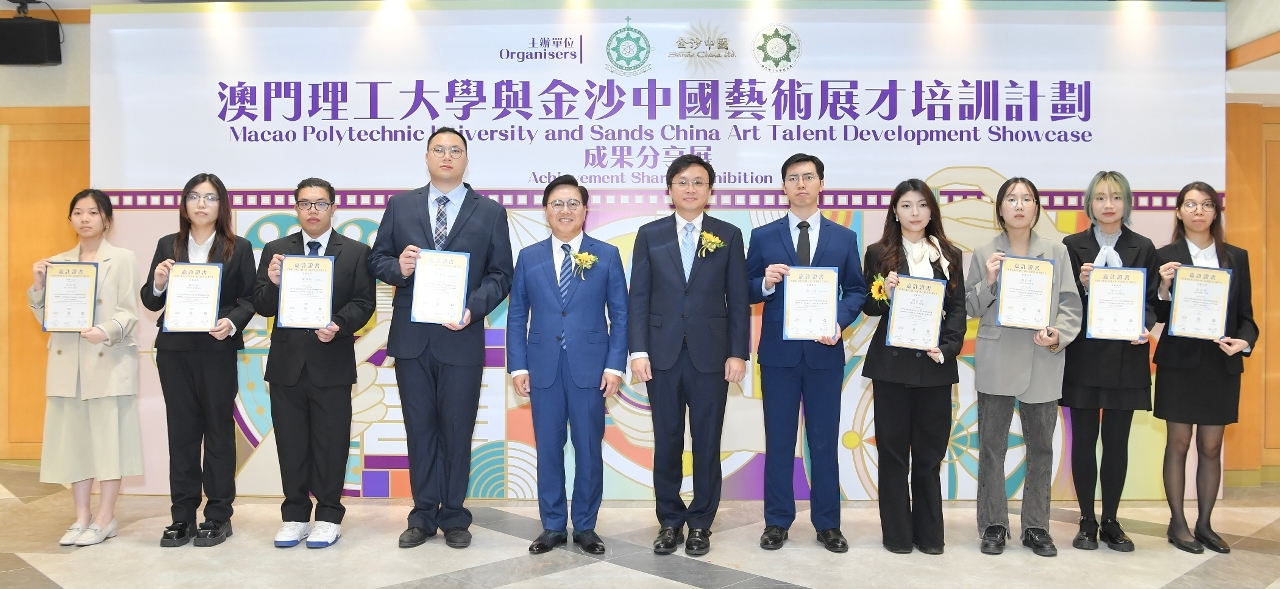 Com o objectivo de se articular com a política de juventude de Macau e apoiar o desenvolvimento da diversificação adequada da economia de Macau “1 + 4”, a Universidade Politécnica de Macau, a Sands China e a Associação dos Antigos Alunos da UPM organizaram, em conjunto, o “Art Talent Development Showcase”, sendo que a sessão de partilha de resultados teve lugar na UPM, onde os trabalhos criativos dos alunos foram expostos num ambiente entusiástico. Na presença do Reitor da UPM, Im Sio Kei, Vice-Presidente Executivo da Sands China, Wilfred Wong, Presidente da Direcção da Associação dos Antigos Alunos da UPM, Wong U Kei, entre outros, foram entregues certificados aos alunos que participaram neste programa.