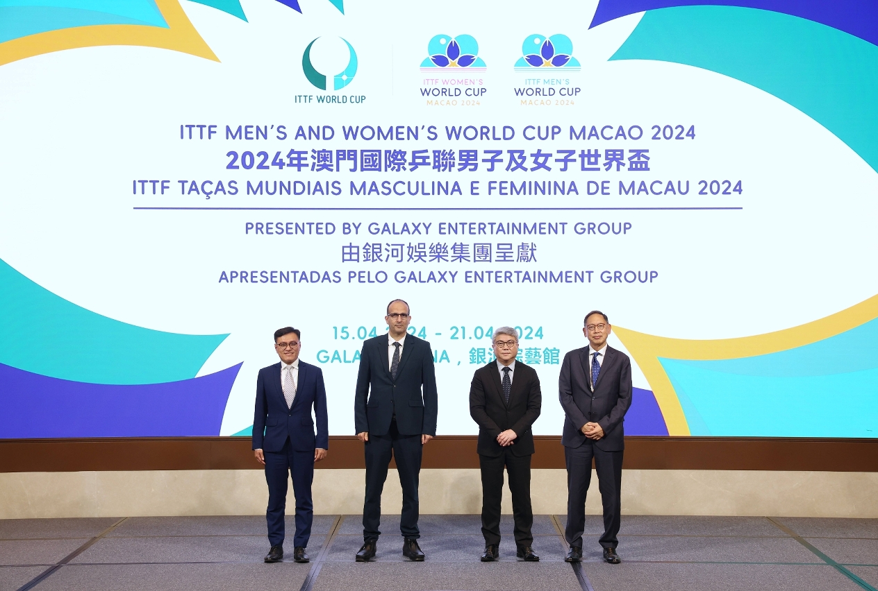 As ITTF Taças Mundiais Masculina e Feminina de Macau 2024, apresentadas pelo Galaxy Entertainment Group, terão lugar na Arena do Galaxy de 15 a 21 de Abril, contando com a participação de jogadores de elite a nível mundial, 48 masculinos e 48 femininos, que disputarão a vitória na cidade, incluindo: Fan Zhendong, coroado vencedor na categoria de singulares masculinos no Torneio Mundial de Ténis de Mesa de 2023, que irá defender a sua coroa na Taça Mundial Masculino da ITTF este ano; Chen Meng, que irá defender a sua coroa na Taça Mundial Feminino da ITTF este ano; Sun Yingsha, coroada vencedora na categoria de singulares femininos na Taça Mundial de Ténis de Mesa de 2023; os campeões Sub-19 do Torneio Mundial de Jovens, Lin Shidong e Kuai Man; e jogadores que garantiram o seu lugar através dos Torneios Intercontinentais e com base no ranking mundial.