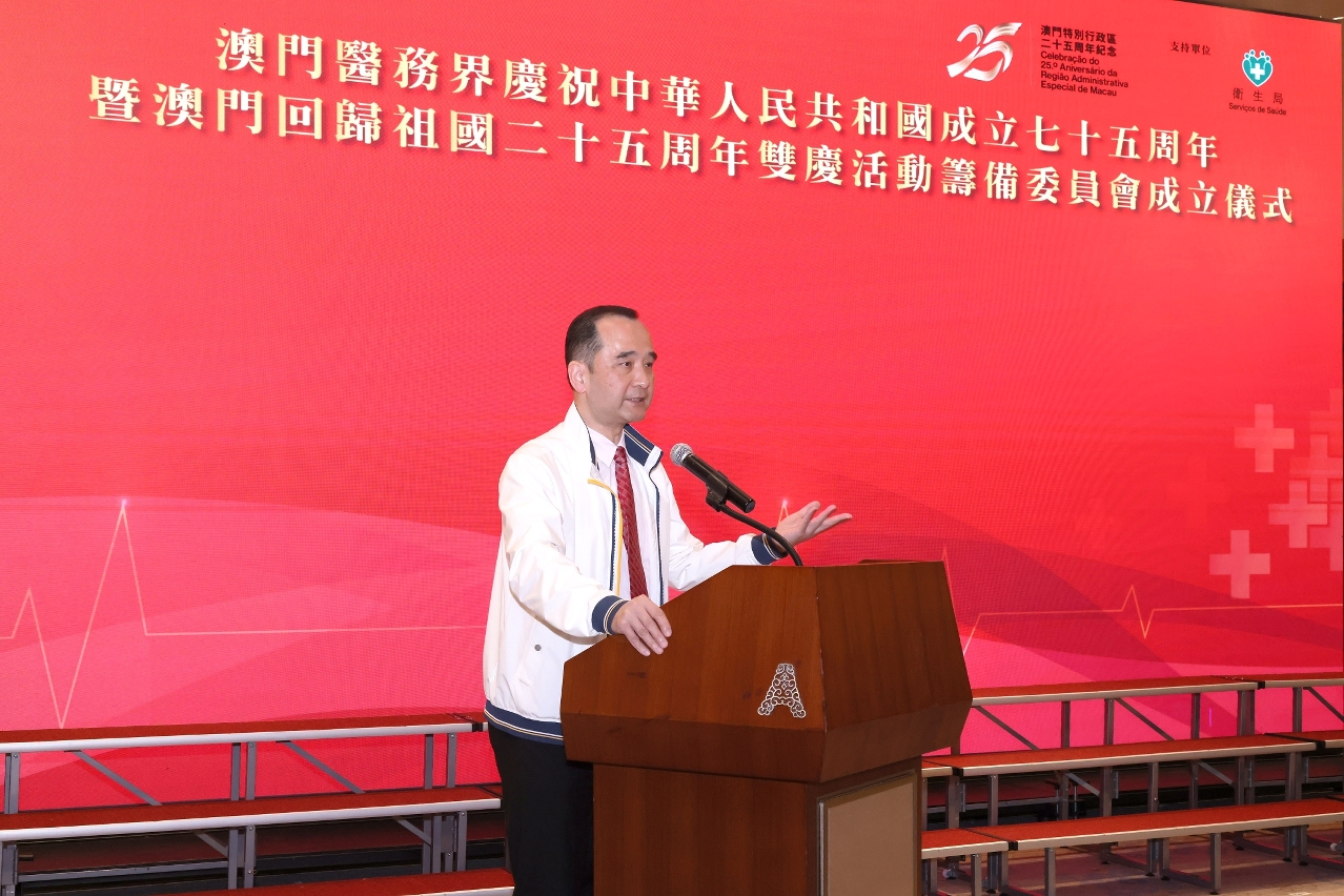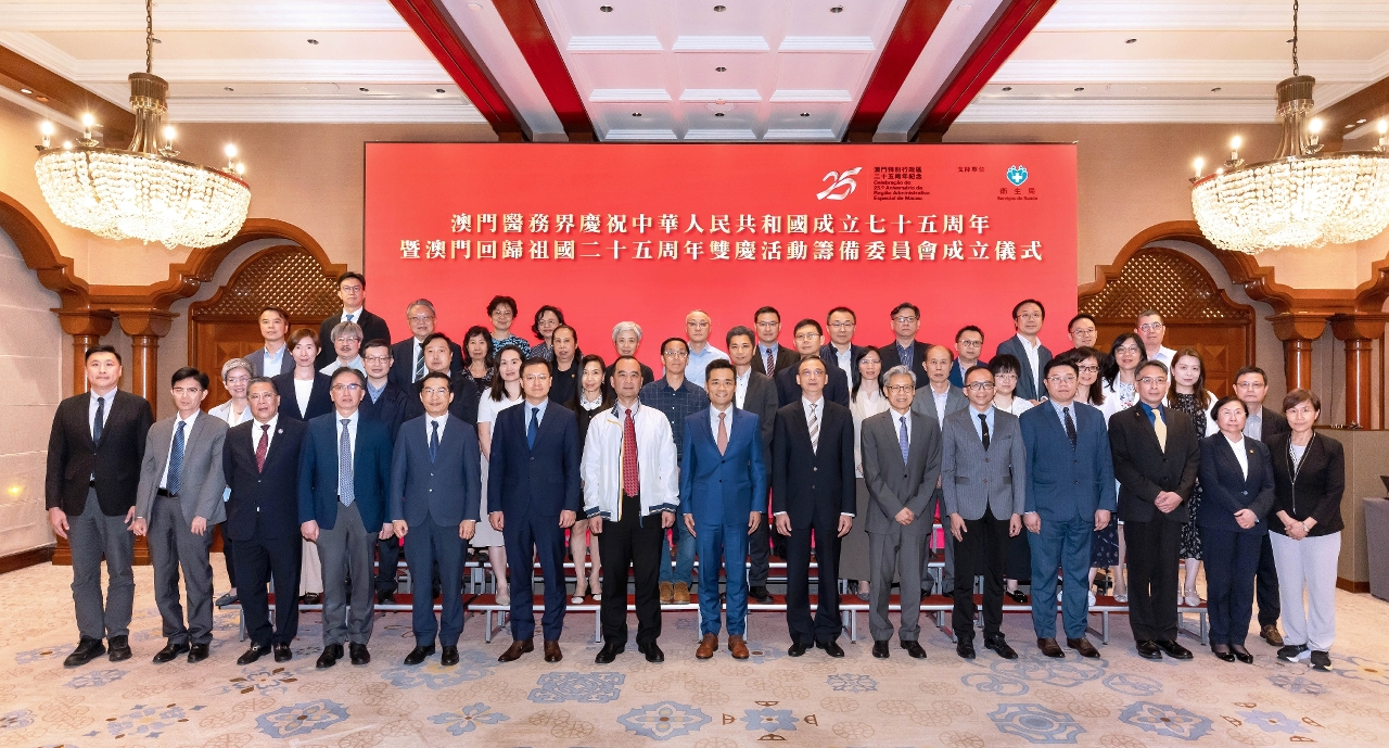 Para celebrar o 75.º Aniversário da Implantação da República Popular da China e o 25.º Aniversário da Reunificação de Macau à Pátria, o sector da saúde de Macau criou nos últimos dias a “Comissão Organizadora das Actividades Comemorativas do 75.º Aniversário da Implantação da República Popular da China e do 25.º Aniversário da Reunificação de Macau à Pátria”, e realizando a cerimónia do estabelecimento, com o objectivo de reunir as forças do sector de saúde para receber o duplo aniversário e promover, em conjunto, o desenvolvimento sustentável do sector de saúde de Macau.