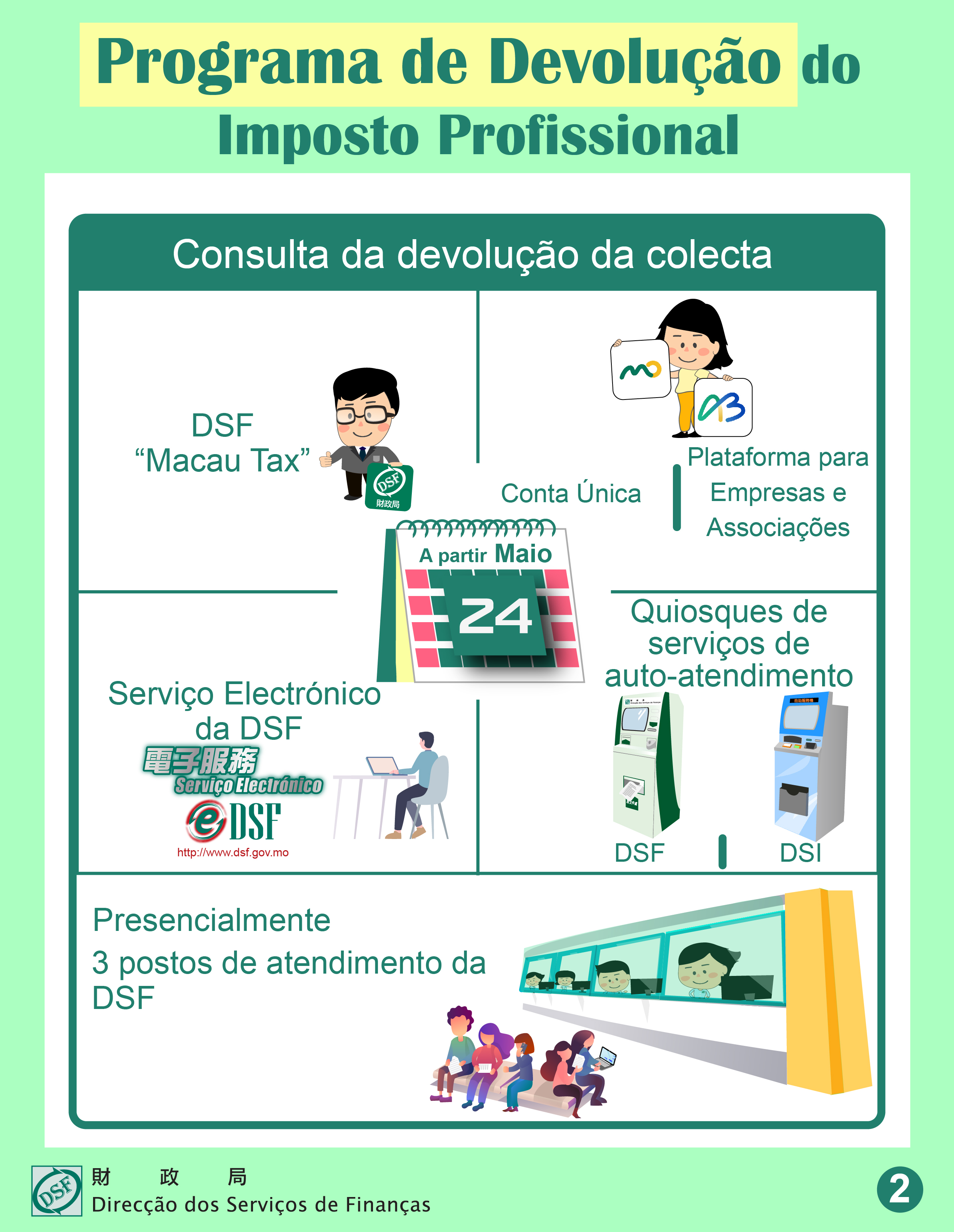 A partir de 24 de Maio, os contribuintes podem consultar as informações sobre o Programa de devolução do Imposto Profissional de 2022 através dos seguintes meios: