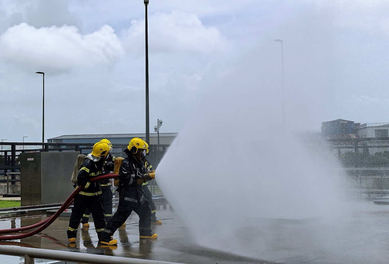 O CB, a DSAMA e a Companhia de Produtos Químicos e Petrolíferos Nam Kwong, Limitada destacaram, no total, quase 40 indivíduos para participar neste simulacro, que durou cerca de meia hora, cujo objectivo principal era testar a capacidade de resposta e o mecanismo de comunicação de diversas partes em situações de emergência, cujo processo correu bem e cujos objectivos e resultados previstos foram atingidos.