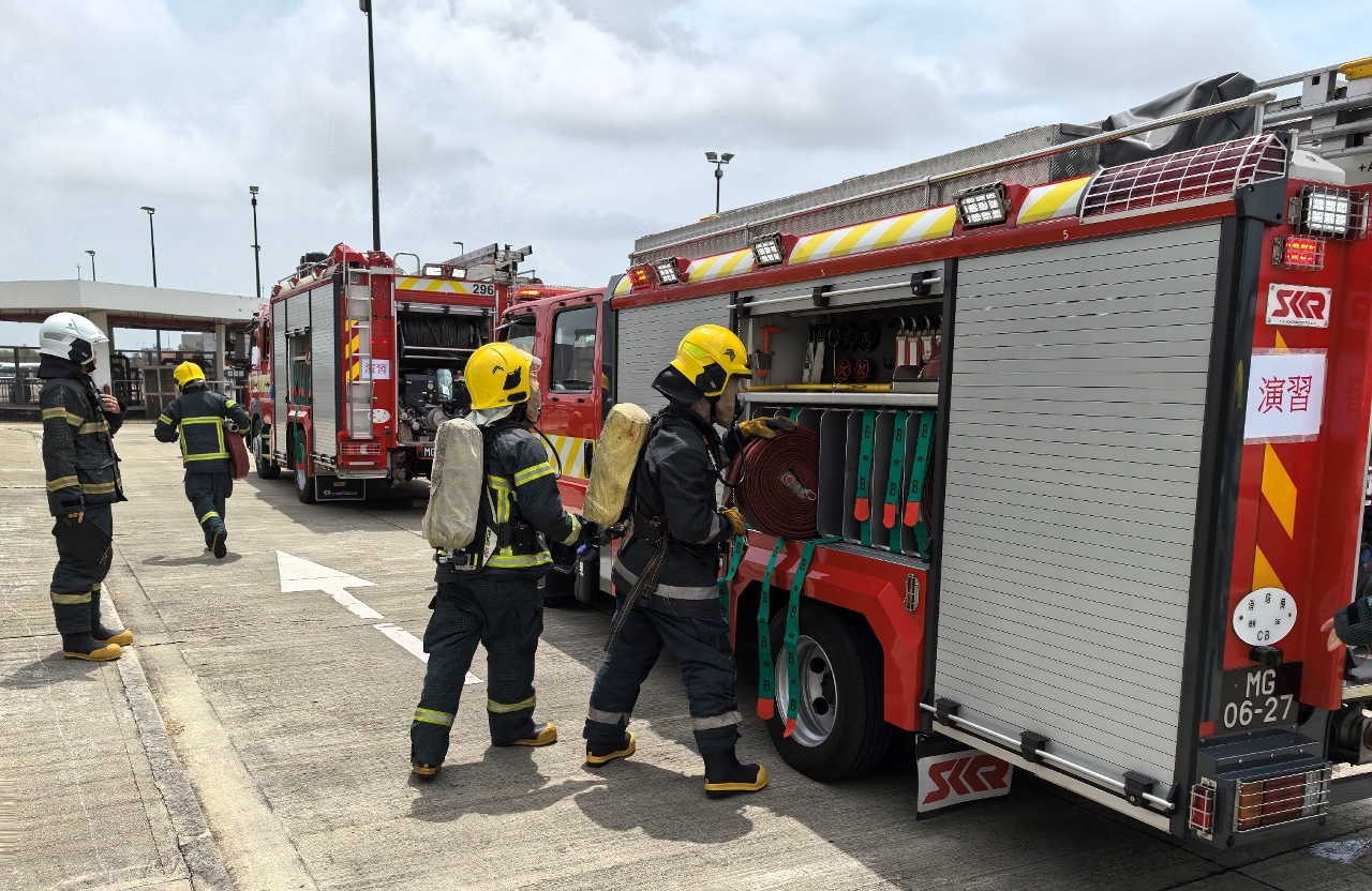 O Corpo de Bombeiros (CB) realizou, na manhã do dia 18 de Junho do corrente ano, um simulacro de incêndio e evacuação no Depósito de Combustíveis do Terminal Marítimo de Passageiros da Taipa em conjunto com a Direcção dos Serviços de Assuntos Marítimos e de Água (DSAMA) e a Companhia de Produtos Químicos e Petrolíferos Nam Kwong, Limitada, com vista a intensificar as medidas de contingência e o mecanismo de comunicação e coordenação com as entidades em caso de emergência.