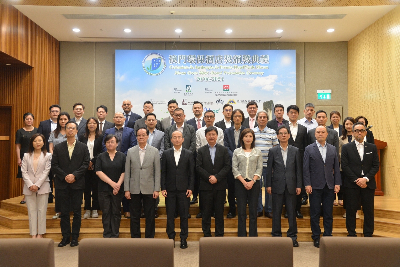 A Cerimónia de Atribuição do Prémio Hotel Verde Macau decorreu hoje (dia 20) no auditório da Direcção dos Serviços de Protecção Ambiental (DSPA), tendo sido atribuídos prémios aos 15 hotéis premiados no âmbito do “Prémio Hotel Verde Macau 2023” (vide o anexo sobre a lista dos premiados), em reconhecimento da contribuição do sector para os trabalhos de protecção ambiental de Macau.