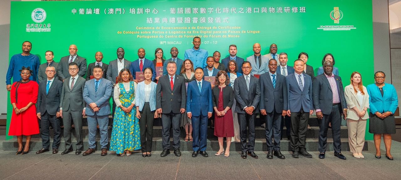 A 12 de Julho, realizou-se, na Torre de Macau, a cerimónia de encerramento e de entrega de certificados do "Colóquio sobre Portos e Logística na Era Digital para os Países de Língua Portuguesa", organizado pelo Secretariado Permanente do Fórum para a Cooperação Económica e Comercial entre a China e os Países de Língua Portuguesa (Macau) e realizado pela Universidade da Cidade de Macau. A cerimónia contou com a presença do Secretário-Geral do Secretariado Permanente do Fórum de Macau, Dr. Ji Xianzheng, do Reitor da Universidade da Cidade de Macau, Dr. Liu Jun, e, do representante rotativo dos formandos, Dr. Herlander Rossi da Costa Medeiros, que endereçaram, respectivamente, as suas intervenções.