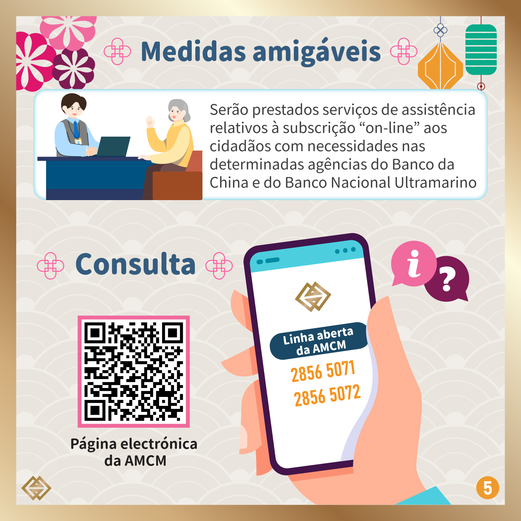 Os residentes de Macau (portadores de bilhete de identidade de residente) que queiram proceder à troca das referidas notas devem, durante o período de subscrição, aceder ao sistema de subscrição de marcação prévia, através da página electrónica da AMCM para efeitos de subscrição numa única vez. Aliás, os residentes que finalizaram, com sucesso, a subscrição devem conservar o respectivo registo de confirmação, podendo as informações de confirmação ser consultadas no sistema de subscrição “on-line”. Serão prestados serviços de assistência relativos à subscrição “on-line” aos cidadãos com necessidades nas determinadas agências do Banco da China e do Banco Nacional Ultramarino.