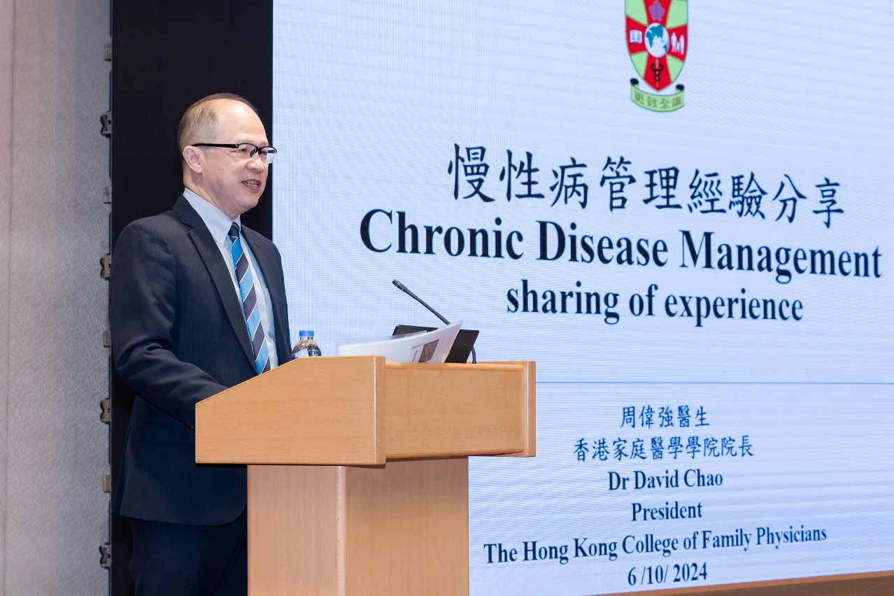 O Dr Lee Kwok Tong proferiu o discurso temático "Perspectivas sobre a aplicação das tecnologias de IA - A nova qualidade da produtividade trazida para o desenvolvimento médico da comunidade internacional", analisando profundamente os possíveis impactos e desafios que as tecnologias de inteligência artificial podem trazer ao sistema de saúde. Partilhou a actual aplicação da tecnologia de inteligência artificial na medicina comunitária e apontou que o desenvolvimento da tecnologia de inteligência artificial será uma oportunidade para a medicina familiar repensar e fortalecer o seu papel. O Dr. David Chao proferiu um discurso intitulado "Resumo e Partilha das Experiências de Gestão de Doenças Crónicas em Hong Kong para a Promoção da Saúde nos Cuidados de Saúde Comunitários", apresentando o sistema de formação especializada em medicina familiar de Hong Kong. A par disso, também partilhou a experiência bem-sucedida dos cuidados de saúde comunitários de Hong Kong na gestão de doenças crónicas.