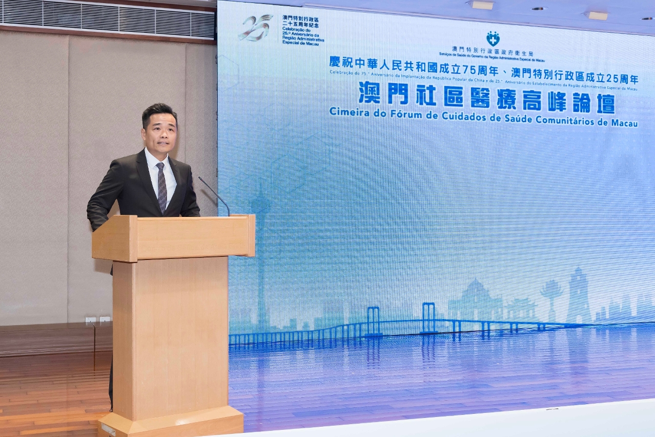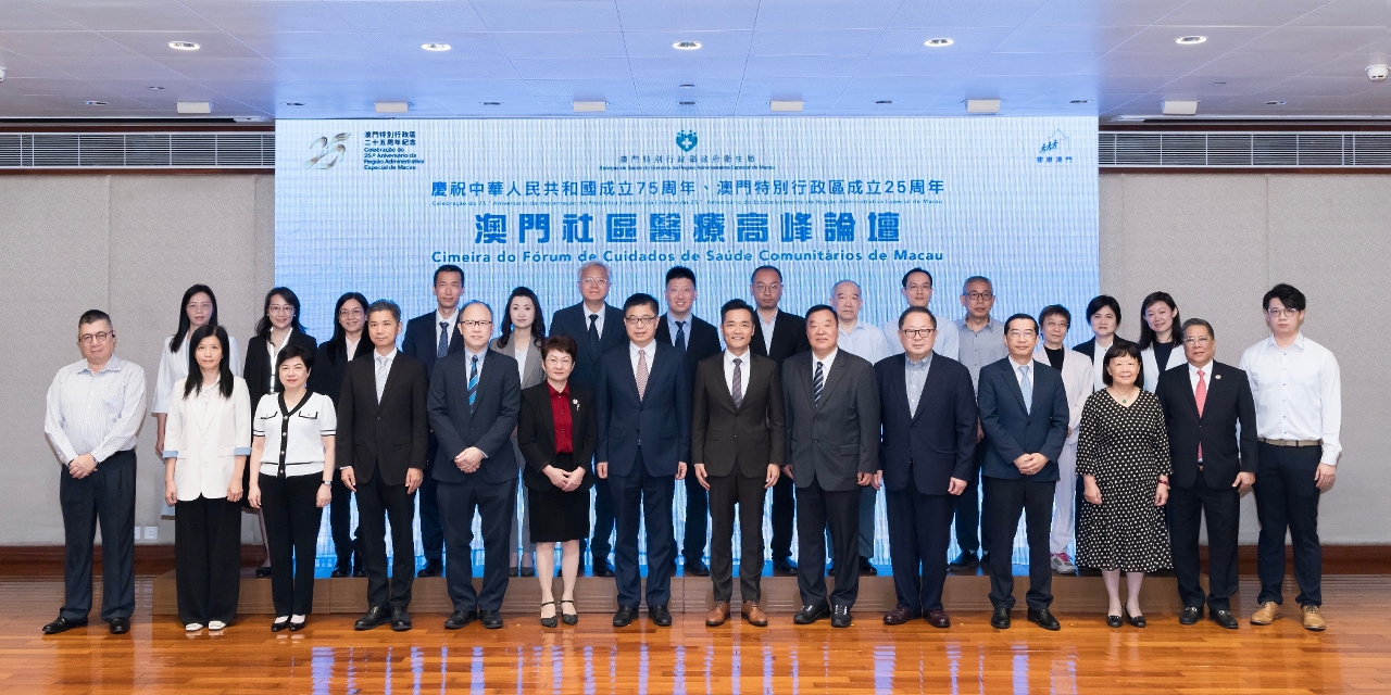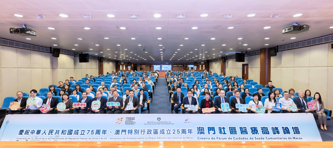Recentemente, os Serviços de Saúde realizaram, no Centro de Saúde da Areia Preta, a "Comemoração do 75.º Aniversário da Implantação da República Popular da China, o 25.º Aniversário do Estabelecimento da Região Administrativa Especial de Macau e a Cimeira do Fórum de Cuidados de Saúde Comunitários em Macau", tendo abordado a implementação eficaz dos diversos objectivos do "Plano de Acção para Macau Saudável", através do sistema de saúde comunitário, no sentido de elevar o nível geral de saúde dos residentes de Macau e concretizar a visão de Macau saudável. O Director do Departamento de Publicidade e Cultura do Gabinete de Ligação do Governo Popular Central na RAEM, Dr. Wan Sucheng, o Director dos Serviços de Saúde, Dr. Lo Iek Long, o Vice-Presidente Permanente da Escola de Saúde Pública de Van Ke da Universidade de Tsinghua e Director do Instituto de Pesquisa da China em Saúde da Universidade de Tsinghua, Professor Liang Wannian, a Inspectora de 2ª classe da Comissão de Saúde de Fujian, Dra. Zhang Fudi, o Director do Instituto de Medicina Familiar de Hong Kong Dr. Lee Kwok Tong, o Presidente do Instituto de Medicina Familiar de Hong Kong, Dr. David Chao, o Subdirector dos Serviços de Saúde, Dr. Cheang Seng Ip e o Subdirector dos Serviços de Saúde, substituto, Dr. Tai Wa Hou presidiram conjuntamente a cerimónia de abertura.