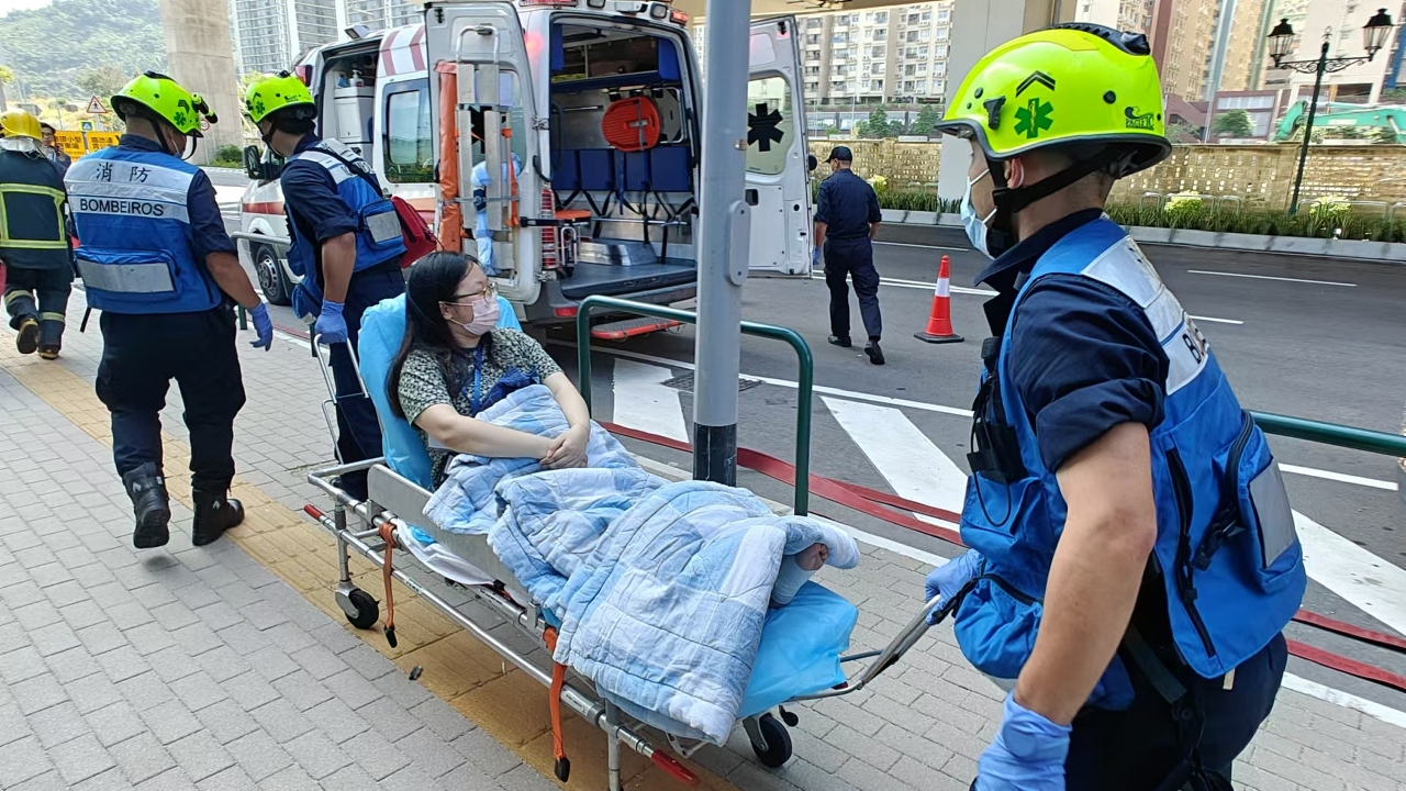 Depois do alarme, o CB enviou de imediato 6 veículos de socorro e emergência e 25 bombeiros para acorrerem ao local, com vista a desenvolver as acções de combate a incêndios e evacuação de acordo com o plano de acção estabelecido, e simular o transporte dos dois feridos que ficaram feridos durante a evacuação para o hospital para o tratamento após a enfermagem preliminar.