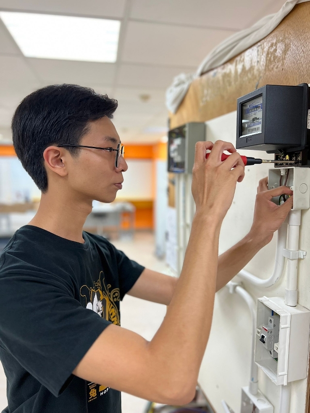 O formando Sr. Hoi, pelo interesse em técnicas práticas, no ensino secundário complementar, transferiu para frequentar o curso de tecnologia electrónica na escola técnico-profissional, e obteve a certificação de electricista de manutenção de nível básico e intermédio pela orientação da escola na inscrição do tese de técnicas profissionais da DSAL. Devido à excelente classificação do ensino secundário complementar, Sr. Hoi foi atribuído uma bolsa de estudo e contratado por iniciativa de uma empresa de grande envergadura, tendo até agora ingressado nesta empresa há quase seis anos, na qualidade de aprendiz no início das funções e posteriormente, foi promovido a técnico auxiliar de engenharia.