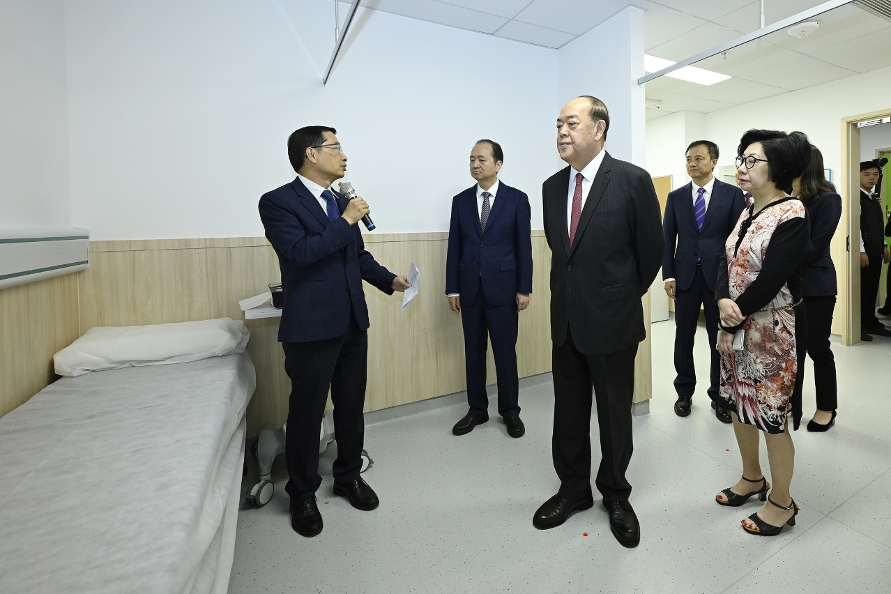 Em seguida, o Chefe do Executivo, Ho Iat Seng, o Director do Gabinete de Ligação do Governo Popular Central na RAEM, Zheng Xincong, a Secretária para os Assuntos Sociais e Cultura da RAEM, Ao Ieong U, o Secretário do Grupo de Liderança do Partido e Director da Comissão de Saúde da Província de Guangdong, Dr. Liu Liqun, e entre outros convidados, acompanhados pelo Director Lo Iek Long, visitou a sala de tratamento,farmácia, sala de amamentação e sala polivalente do Posto de Saúde. Durante a visita, o Subdirector dos Serviços de Saúde, Dr. Cheang Seng Ip, fez uma apresentação detalhada.