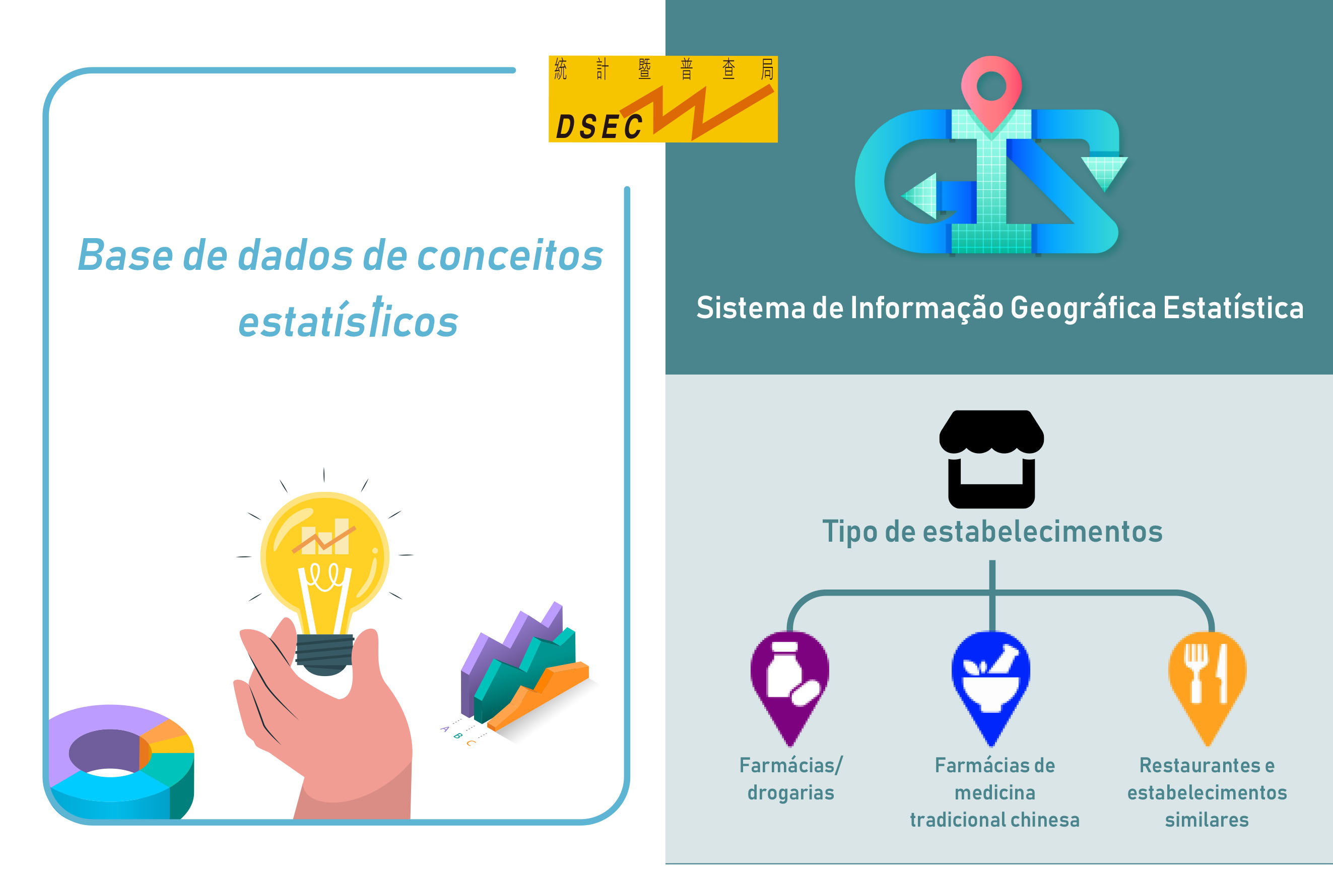 Paralelamente, a DSEC procedeu à actualização do “Sistema de Informação Geográfica Estatística”, o qual integra o mapa electrónico e os dados estatísticos oficiais. Com base na informação originalmente existente das fracções autónomas habitacionais de Macau e da população de Macau, adicionaram-se ao sistema os dados estatísticos relativos ao número de estabelecimentos, por exemplo, os restaurantes e estabelecimentos similares, bem como as farmácias. Para o utilizador consultar os dados relativos ao número de diferentes tipos de estabelecimentos da área ou zona estatística que lhe interessa, basta seleccioná-la. Além disso, com este sistema também pode visualizar a distribuição geográfica de dados dos estabelecimentos consultados.