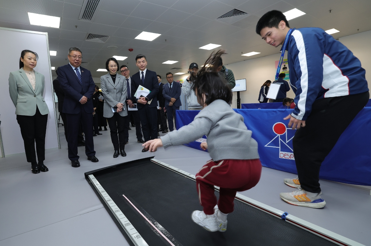 A “Avaliação da Condição Física da População de Macau de 2025” tem início em Janeiro, com a duração de cerca de quatro meses, é uma iniciativa organizada pelo Instituto do Desporto que conta com o apoio técnico do Instituto de Investigação Científica do Desporto da Administração Geral de Desporto do Estado e com a colaboração da Direcção dos Serviços de Educação e de Desenvolvimento da Juventude, dos Serviços de Saúde, do Instituto de Acção Social e da Universidade Politécnica de Macau. A Cerimónia de Lançamento da “Avaliação da Condição Física da População de Macau 2025” teve lugar hoje (dia 14) de manhã, na Sala Polivalente do Centro Desportivo Olímpico. Estiveram presentes no evento a Secretária para os Assuntos Sociais e Cultura, O Lam, o Presidente do Instituto de Investigação Científica do Desporto da Administração Geral de Desporto do Estado, Cao Jingwei, a Subdirectora do Departamento de Publicidade e Cultura do Gabinete de Ligação do Governo Popular Central na RAEM, Bai Bing, o Presidente do Instituto do Desporto, Luís Gomes, o Director dos Serviços de Saúde, Lo Iek Long, o Presidente do Instituto de Acção Social, Hon Wai, o Director, substituto, da Direcção dos Serviços de Educação e de Desenvolvimento da Juventude, Wong Ka Ki, o Reitor da Universidade Politécnica de Macau, Im Sio Kei, o Director do Centro de Investigação da Condição Física da População Nacional e da Ciência e Manutenção Física do Instituto de Investigação Científica do Desporto da Administração Geral de Desporto do Estado, Xu Jianfang e o Subdirector Zhang Yanfeng, os membros do Conselho do Desporto e os representantes das entidades participantes da Avaliação. Em seguida, presenciaram no local do evento os trabalhos de avaliação.