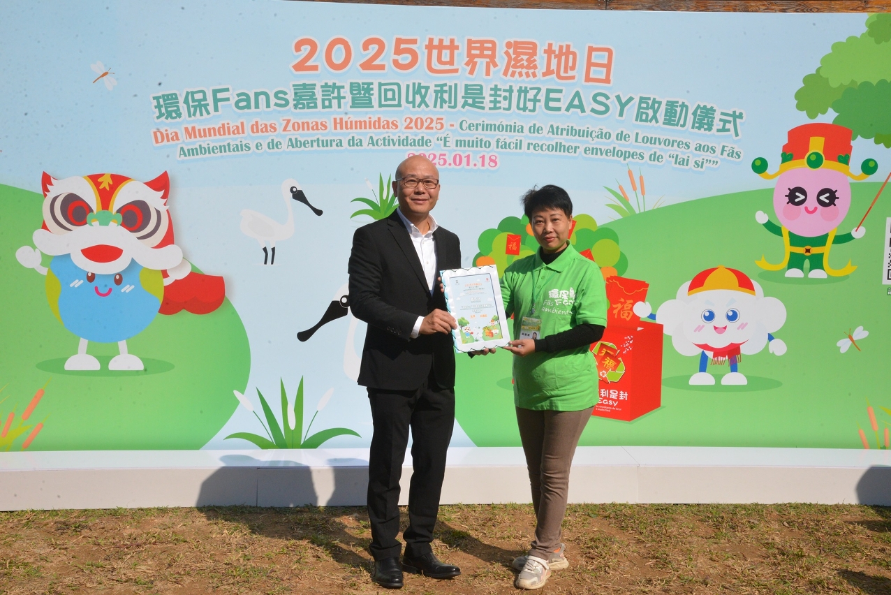 Para comemorar o Dia Mundial das Zonas Húmidas, assinalado no dia 2 de Fevereiro, a Direcção dos Serviços de Protecção Ambiental (DSPA) organizou, no dia 18 de Janeiro de 2025, nas Zonas Ecológicas no Cotai, o Dia Mundial das Zonas Húmidas 2025 – Cerimónia de Atribuição de Louvores aos Fãs Ambientais e de Lançamento da Actividade “É Muito Fácil Recolher Envelopes de Lai Si”, visando incentivar todos os sectores da sociedade a praticar activamente actos de redução de carbono.