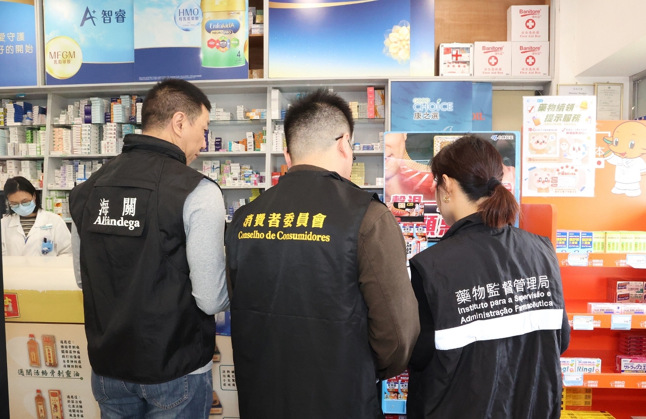 Nesta acção conjunta interdepartamental, os farmacêuticos e os farmacêuticos de medicina tradicional chinesa do ISAF realizaram inspecção sobre os medicamentos e os medicamentos tradicionais chineses fornecidos pelos estabelecimentos comerciais, bem como sobre a situação de exploração e gestão dos estabelecimentos por partes dos profissionais farmacêuticos, divulgando, ao mesmo tempo, aos estabelecimentos comerciais os diplomas legais sobre as actividades farmacêuticas, com vista a exortar o sector farmacêutico a exercer a sua actividade de acordo com a lei, assegurar que o origem dos medicamentos seja legal e que o seu armazenamento seja adequado. Os agentes dos SA foram responsáveis pela verificação do cumprimento das disposições legais relativas às marcas e às patentes comerciais por parte dos estabelecimentos comerciais, pela educação dos estabelecimentos comerciais sobre a protecção dos direitos de propriedade intelectual e a prevenção de infracções, bem como pela distribuição de respectivos folhetos publicitários. Os inspectores do CC inspeccionaram o cumprimento da “Lei de protecção dos direitos e interesses do consumidor” por parte dos estabelecimentos comerciais, além disso, distribuindo folhetos aos estabelecimentos comerciais para a divulgação jurídica sobre a protecção dos direitos e interesses dos consumidores. Através desta acção conjunta, as três partes reforçaram a consciência do cumprimento da lei por parte dos estabelecimentos comerciais, salvaguardando a segurança do uso de medicamentos e os direitos e interesses de consumo dos residentes e dos visitantes.
