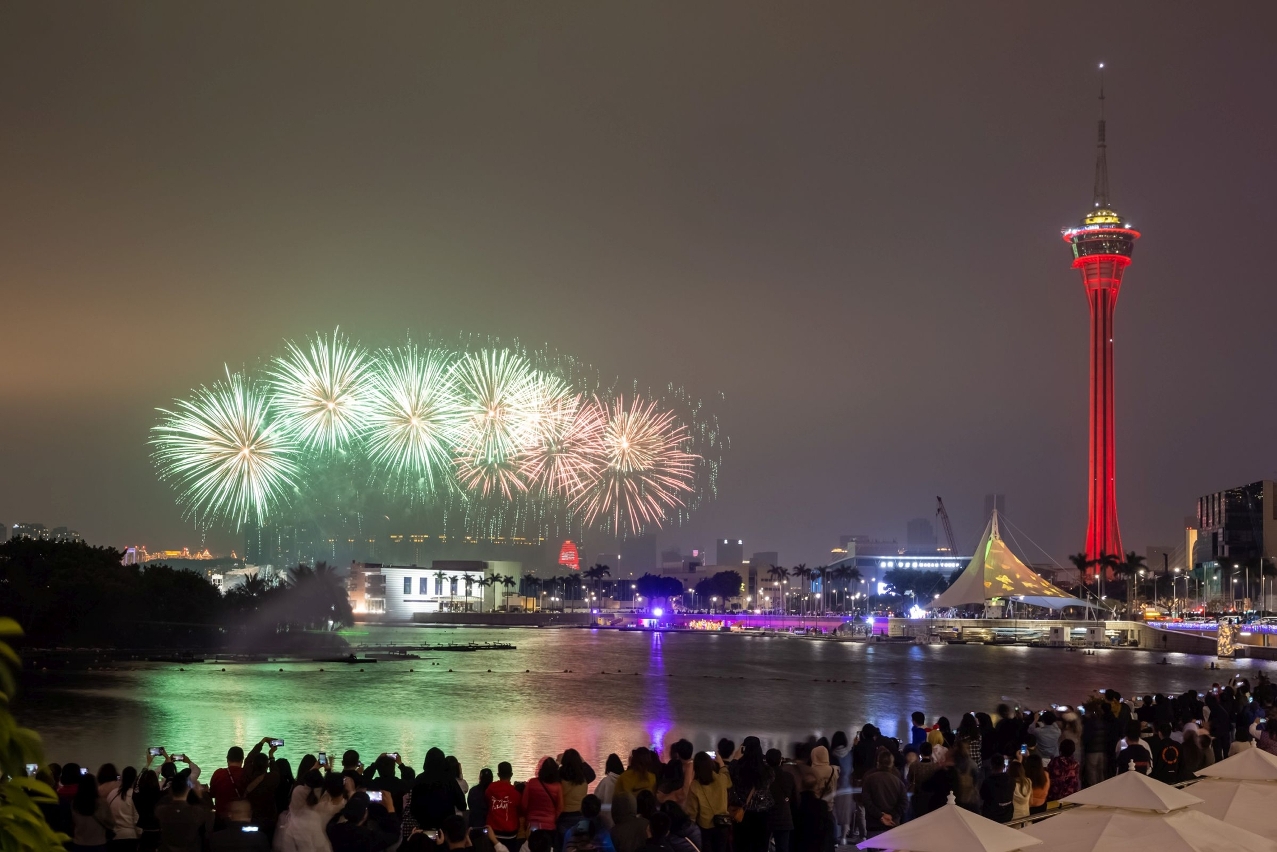 Na sequência das actividades comunitárias nos primeiros dois dias do Ano Novo Chinês seguir-se-ão Espectáculos de Fogo-de-Artifício do Ano Novo Chinês. O primeiro dos Espectáculos de Fogo-de-Artifício do Ano Novo Chinês será realizado no terceiro dia do Ano Novo Lunar (31 de Janeiro), pelas 21h45, o segundo no sétimo dia do Ano Novo Lunar (4 de Fevereiro), “Dia de Todos os Aniversários”, e o terceiro no Festival das Lanternas (12 de Fevereiro), ambos às 21h00. As três exibições pirotécnicas decorrerão na zona ribeirinha em frente à Torre de Macau, com uma duração de 15 minutos cada, para apresentar aos residentes e visitantes, votos de Feliz Ano Novo Lunar.