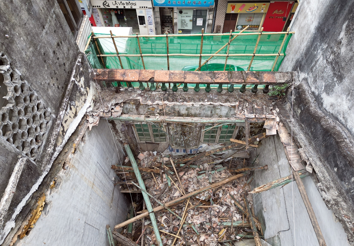O edifício em causa encontra-se situado na Avenida do Conselheiro Ferreira de Almeida e foi instaurado o processo de edifício em estado em ruína devido ao desmoronamento da sua cobertura. Após uma vistoria, a Comissão de vistoria da DSSCU confirmou que o edifício se encontrava em estado de ruína, tendo imediatamente determinado a publicação urgente de um edital a exigir aos proprietários que procedessem à demolição. Contudo, pelo facto de não ter recebido qualquer resposta e tendo em conta o grave desmoronamento da cobertura, o que constitui uma grande ameaça à segurança pública, a DSSCU procedeu à respectiva demolição.