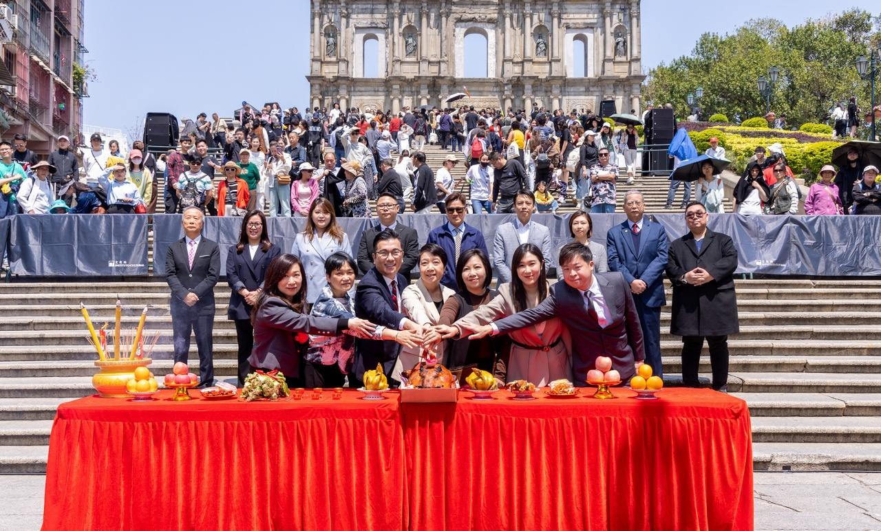 Organizado conjuntamente pelo Instituto Cultural (IC), pela SJM Resorts, S.A., pela Sands China Ltd., pelo MGM, pelo Galaxy Entertainment Group, pela Wynn Resorts (Macau) S.A. e pela Melco Resorts & Entertainment, o “Desfile Internacional de Macau 2025”, em celebração do 26.º aniversário do regresso de Macau à Pátria, terá lugar no dia 23 de Março (Domingo). A fim de rogar pelo sucesso do evento, os representantes das entidades realizaram hoje (21 de Março) uma cerimónia de bênção nas Ruínas de S. Paulo que incluiu uma actuação de dança do leão e actuações de grupos artísticos de Desfile, atraindo a atenção de um grande número de residentes e turistas, numa atmosfera de grande alegria e animação.