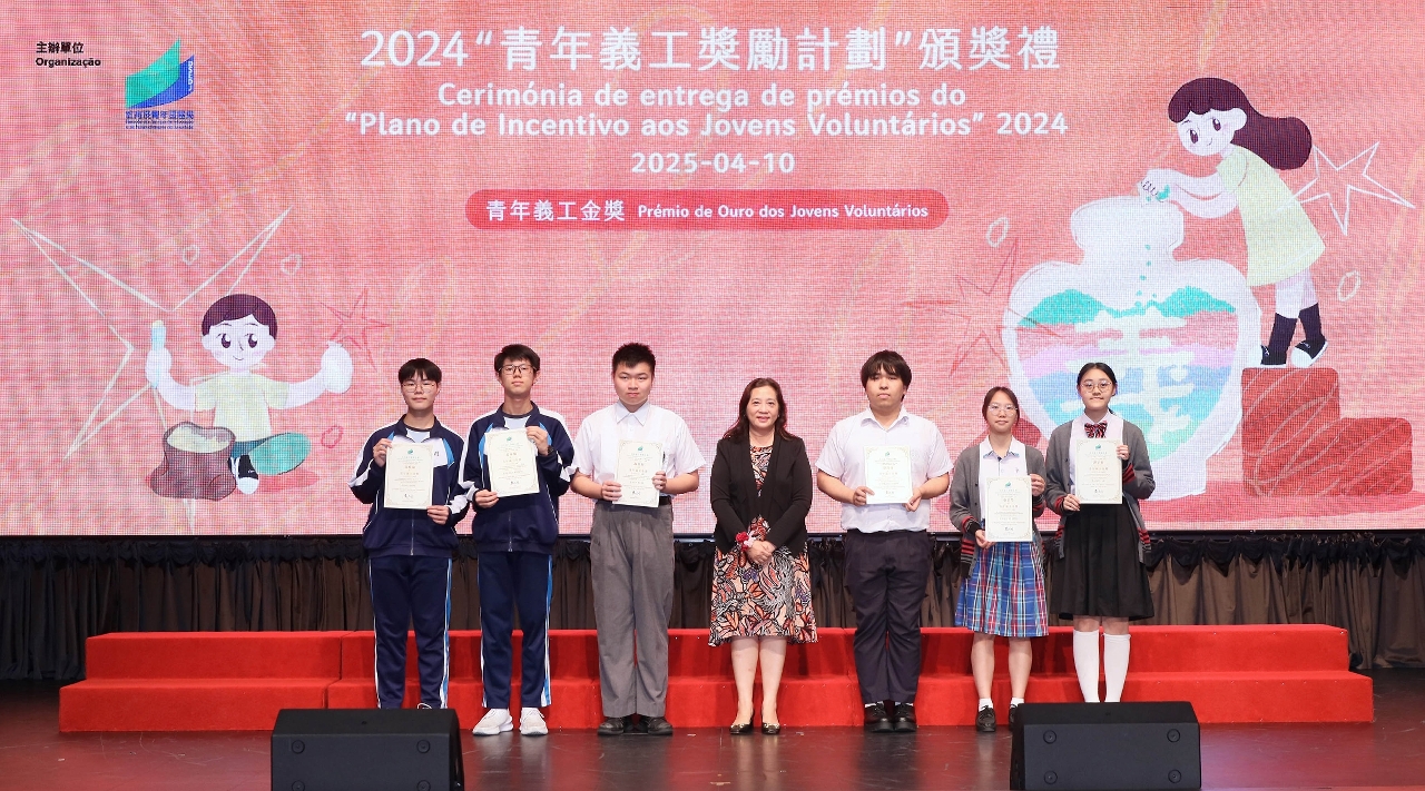 A fim de elogiar e reconhecer o contributo e o compromisso assumidos pelos jovens voluntários de Macau para com a sociedade ao longo do ano passado, a Direcção dos Serviços de Educação e de Desenvolvimento da Juventude (DSEDJ) organizou a cerimónia de entrega de prémios do “Plano de Incentivo aos Jovens Voluntários” de 2024, que teve lugar no dia 10 de Abril. Na cerimónia estiveram presentes mais de 450 pessoas, incluindo os Subdirectores da DSEDJ, Teng Sio Hong e Wong Ka Ki, vogais do Conselho de Juventude, representantes de serviços públicos e instituições públicas participantes nos planos da DSEDJ para jovens voluntários, representantes de associações sociais, representantes de escolas e um grupo de jovens voluntários.